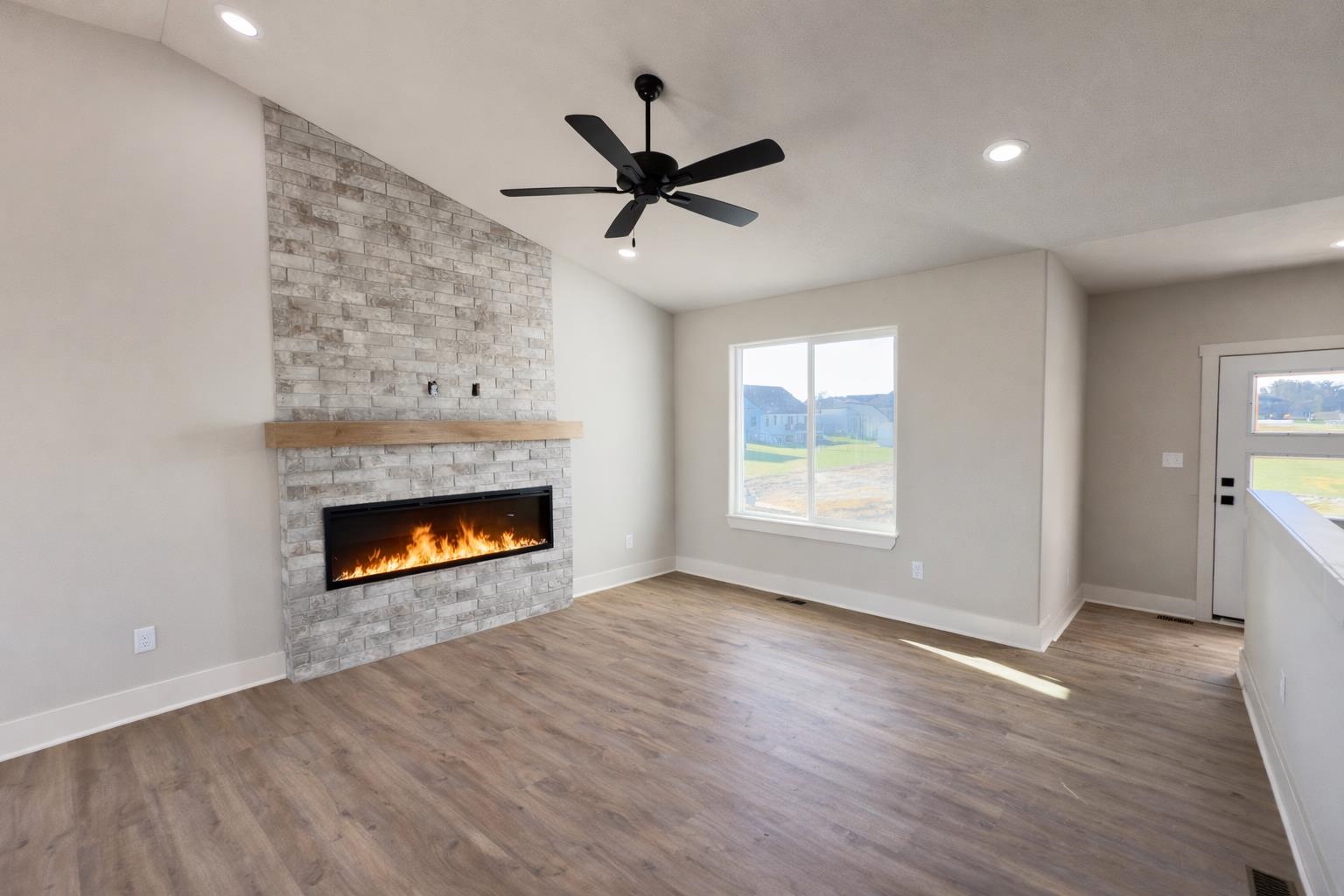 - Features: Ceiling Fan(s)ElectricLiving RoomOneSmoke DetectorsVaulted Ceiling(s)