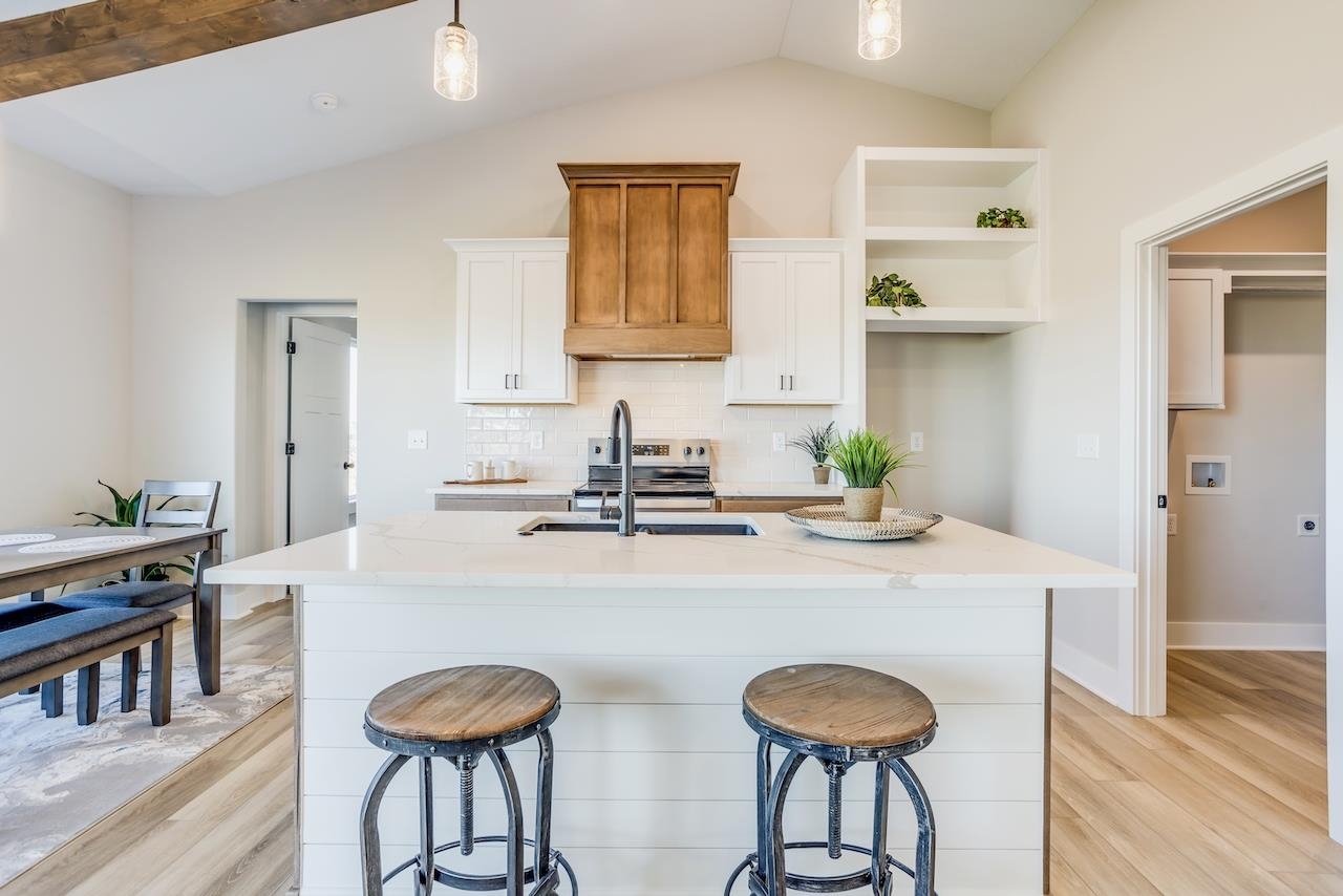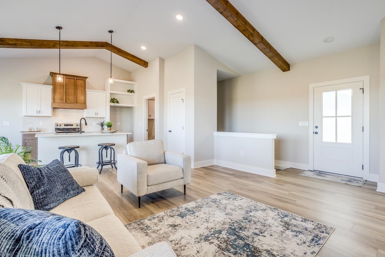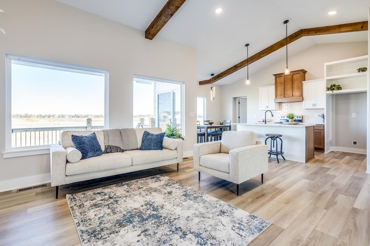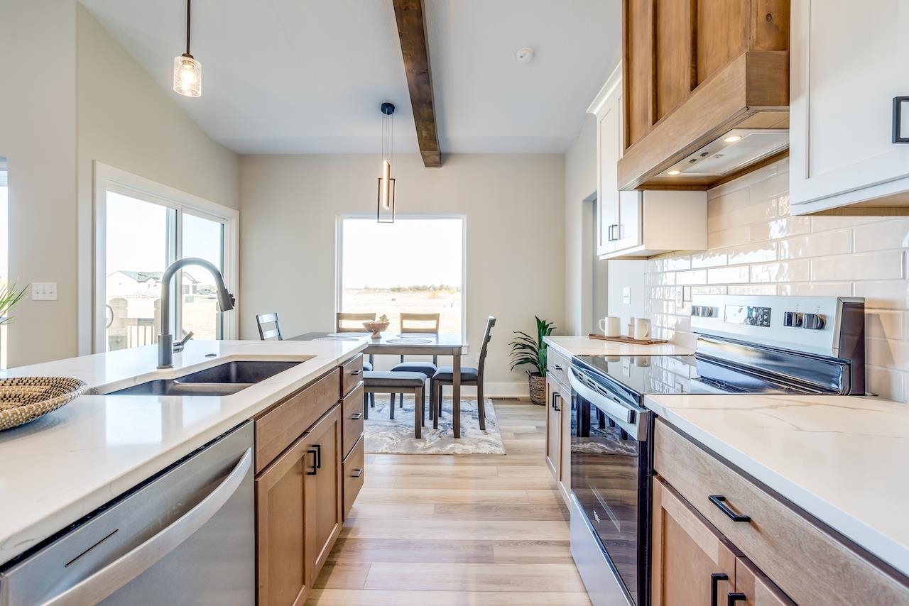 - Description: Bigger is definitely better with this brand new, expanded version of C&A Homes’ most popular plan…the Bunker Plan! Located in the City of Wichita and the Valley Center School District. The main floor features a spacious living room with vaulted, beamed ceilings and electric fireplace, a well-appointed kitchen with quartz countertops, and a generously sized dining room with access to the fully covered deck. The Master Suite is equipped with a private bath complete with a tile walled shower, dual vanity with quartz countertops, and a walk-in closet. The main floor also features 2 additional bedrooms accompanied by a hall bath complete with quartz countertops. The unfinished lower level has been framed and roughed-in to include an expansive family room, 2 additional bedrooms, a hall bath, and plenty of storage. With the unfinished basement already being framed and roughed in, it offers a great opportunity to grow into your new home while building some significant sweat equity, or it can be finished by the Builder upon request! Start enjoying life today in beautiful Watermarke! So close to shopping and dining options, near all the major highways, and so convenient to the highly sought after Valley Center Schools! Please note that the finished interior pictures are of a home previously built in Watermarke and exact finishes will vary. Some information may be estimated…information deemed reliable but not guaranteed. Please verify schools with USD 262.