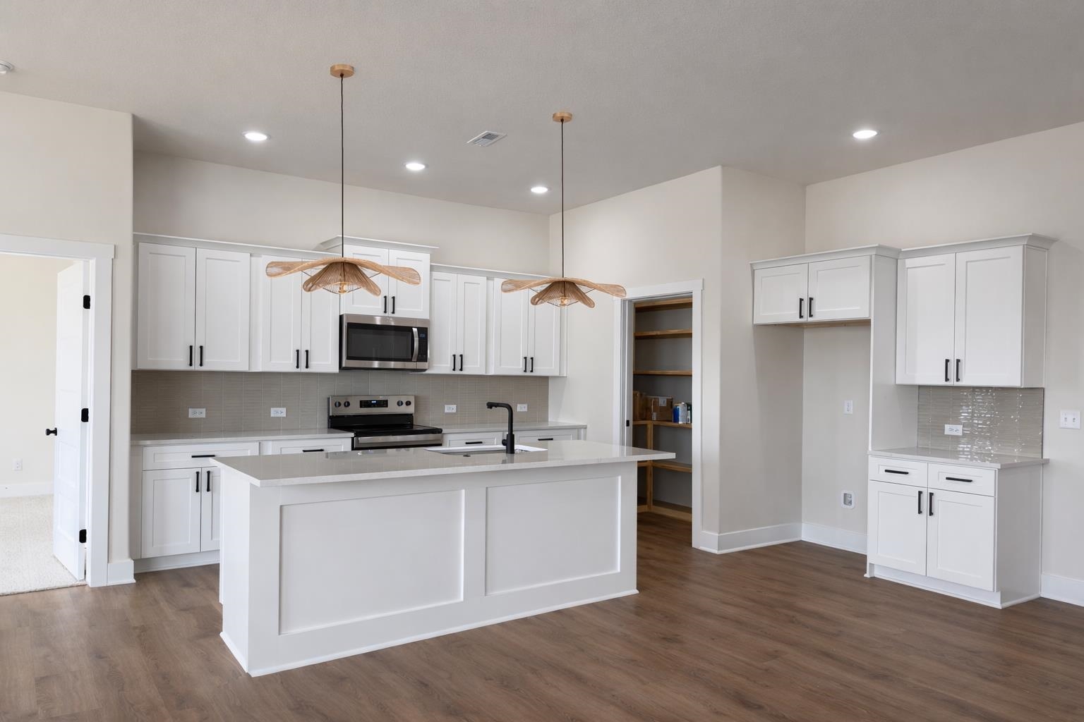 - Description: Introducing The Yosemite Plan by Relph Construction – a thoughtfully designed zero-entry home built for accessibility, comfort, and low maintenance living. This 4-bedroom, 3-bath beauty sits on a quiet cul-de-sac lot with mature trees across the back, offering no rear neighbors and plenty of privacy. Inside, you’ll love the LVP flooring throughout the home, spacious living room with tall flat ceilings, abundant natural light, and a cozy fireplace. The kitchen shines with quartz or granite countertops, walk-in pantry, and ample cabinetry, flowing seamlessly into a huge dining room—perfect for entertaining or family gatherings. Step outside to the covered patio and enjoy peaceful tree-lined views. The luxurious master suite offers a private bath with dual vanities, a tile shower, and a walk-in closet with seasonal hanging. Additional highlights include walk-in closets for every bedroom, a private bath for the oversized 4th bedroom, and an included sod, sprinkler system, and irrigation well. Available now in Watermarke! Some information may be estimated and is not guaranteed. Please verify schools with USD 262.