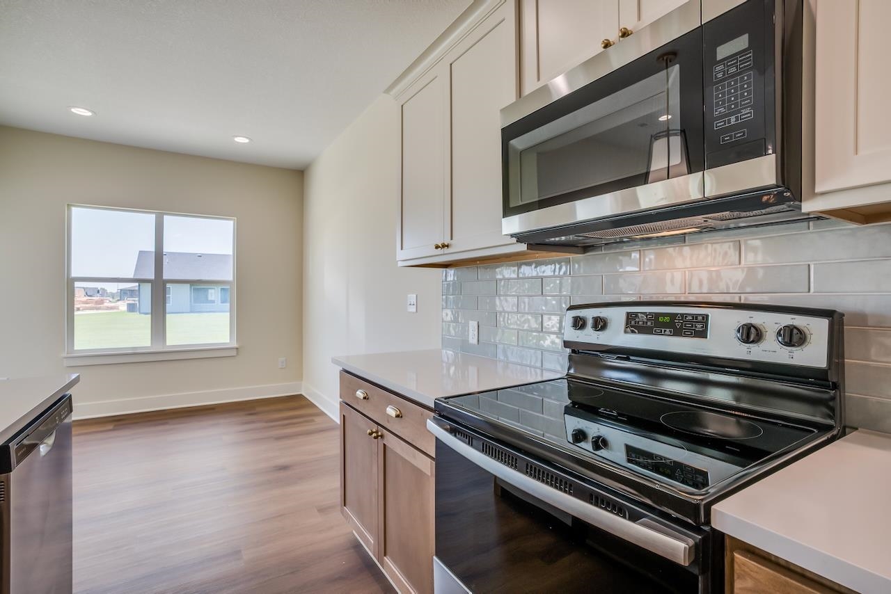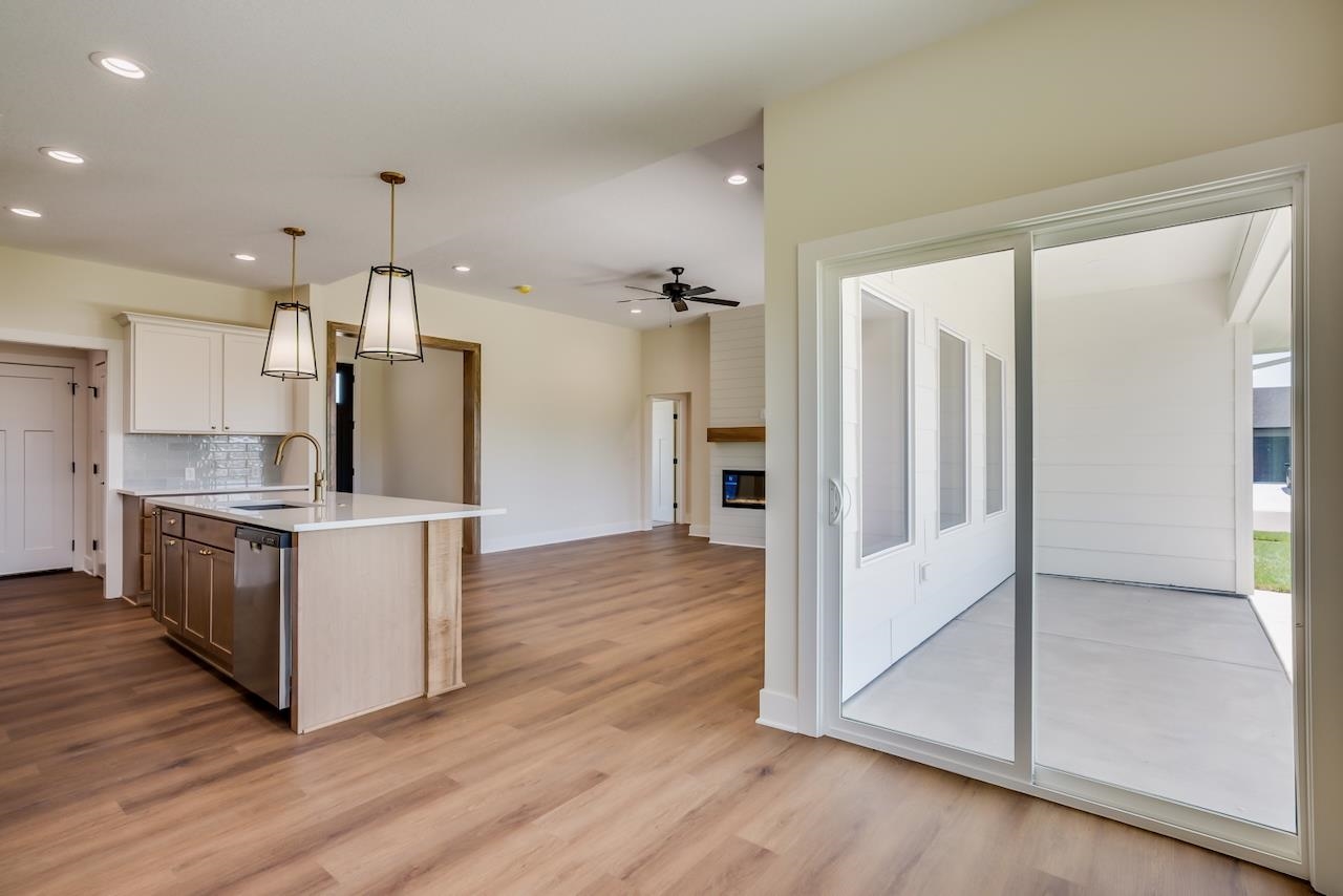 - Description: Introducing the Brax Plan by T.W. Custom Homes – Effortless Living with Timeless Style. Experience the perfect blend of thoughtful design and modern comfort in the all-new zero-step Brax Plan. With its stunning front elevation and classic architectural details, this home makes a striking first impression. Step inside to a welcoming foyer that opens to a spacious living room featuring beamed ceilings, expansive picture windows, and a sleek electric fireplace flanked by built-in shelving—an ideal space for relaxing or entertaining. The chef’s kitchen is both functional and stylish, complete with a large island, granite countertops, ample cabinetry, and a walk-in pantry. The open dining area flows seamlessly to the covered back patio, extending your living space outdoors. Retreat to the luxurious Master Suite with a spa-like private bath, showcasing a dual quartz vanity, low-curb tile shower, and a generous walk-in closet. Convenience meets design in the smart layout featuring a drop zone just inside the garage entry, leading directly to a well-appointed laundry room with a built-in folding table, hanging rod, and cabinets. A concrete storm shelter, discreetly tucked behind the mechanical room, adds peace of mind without sacrificing space or style. Two additional large bedrooms and a full hall bath complete this intelligently designed home—all on a zero-step layout that brings ease and accessibility to everyday living. Live comfortably and stylishly with today’s most sought-after features and finishes in the beautifully crafted Brax Plan. Some information may be estimated and is not guaranteed. Please verify schools with USD 262.