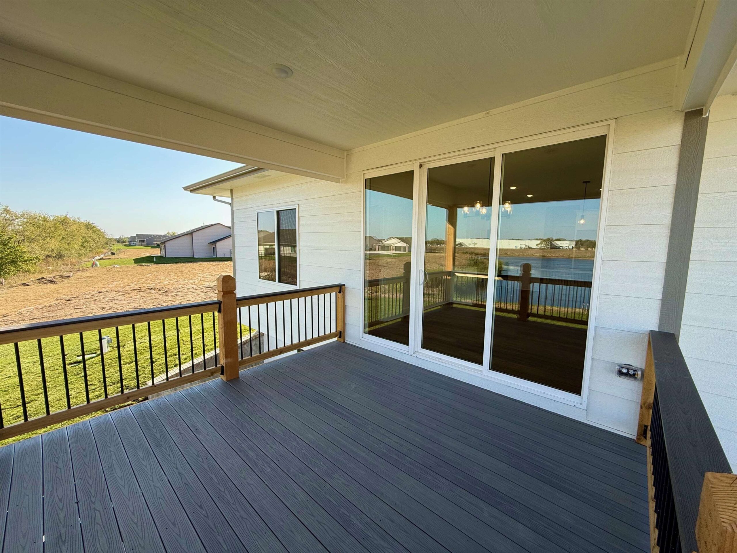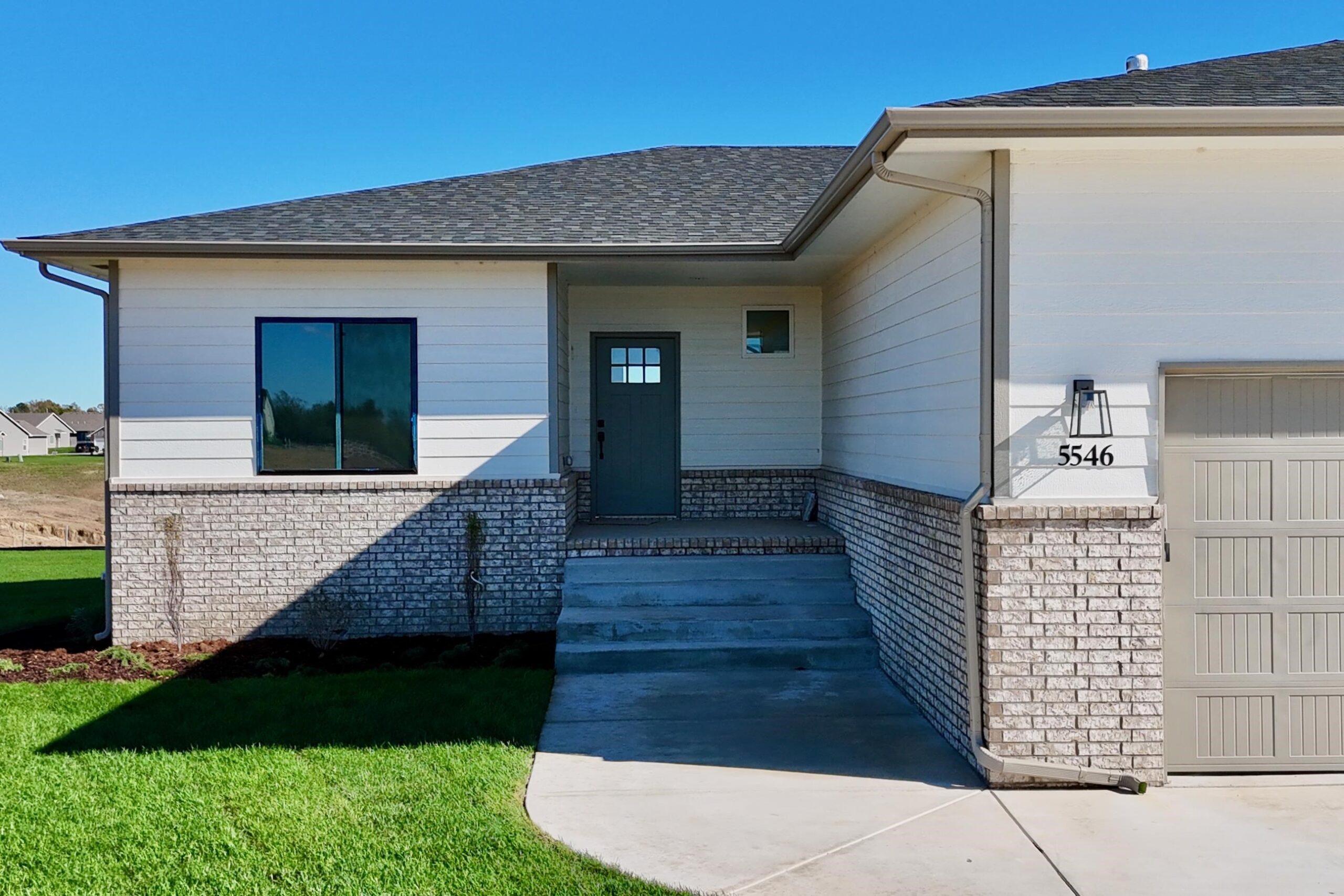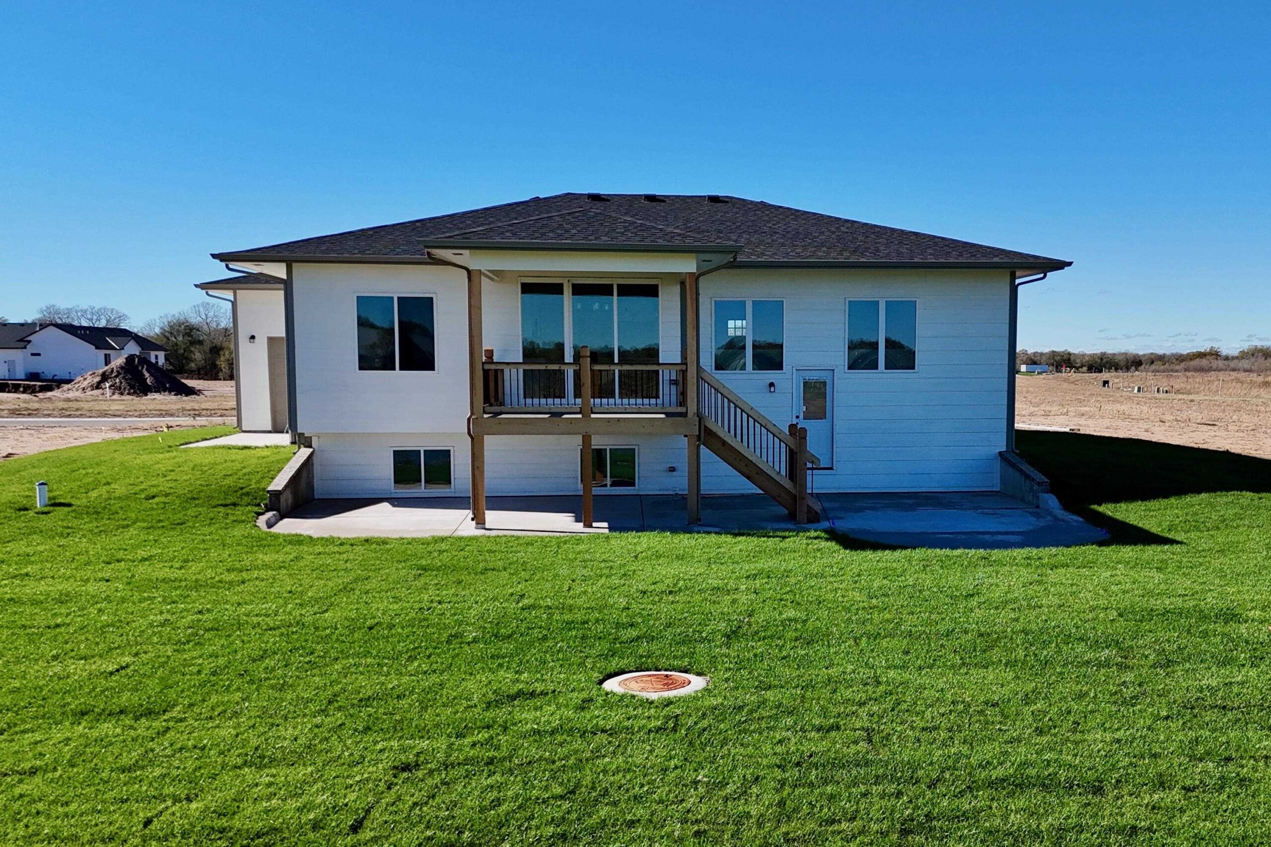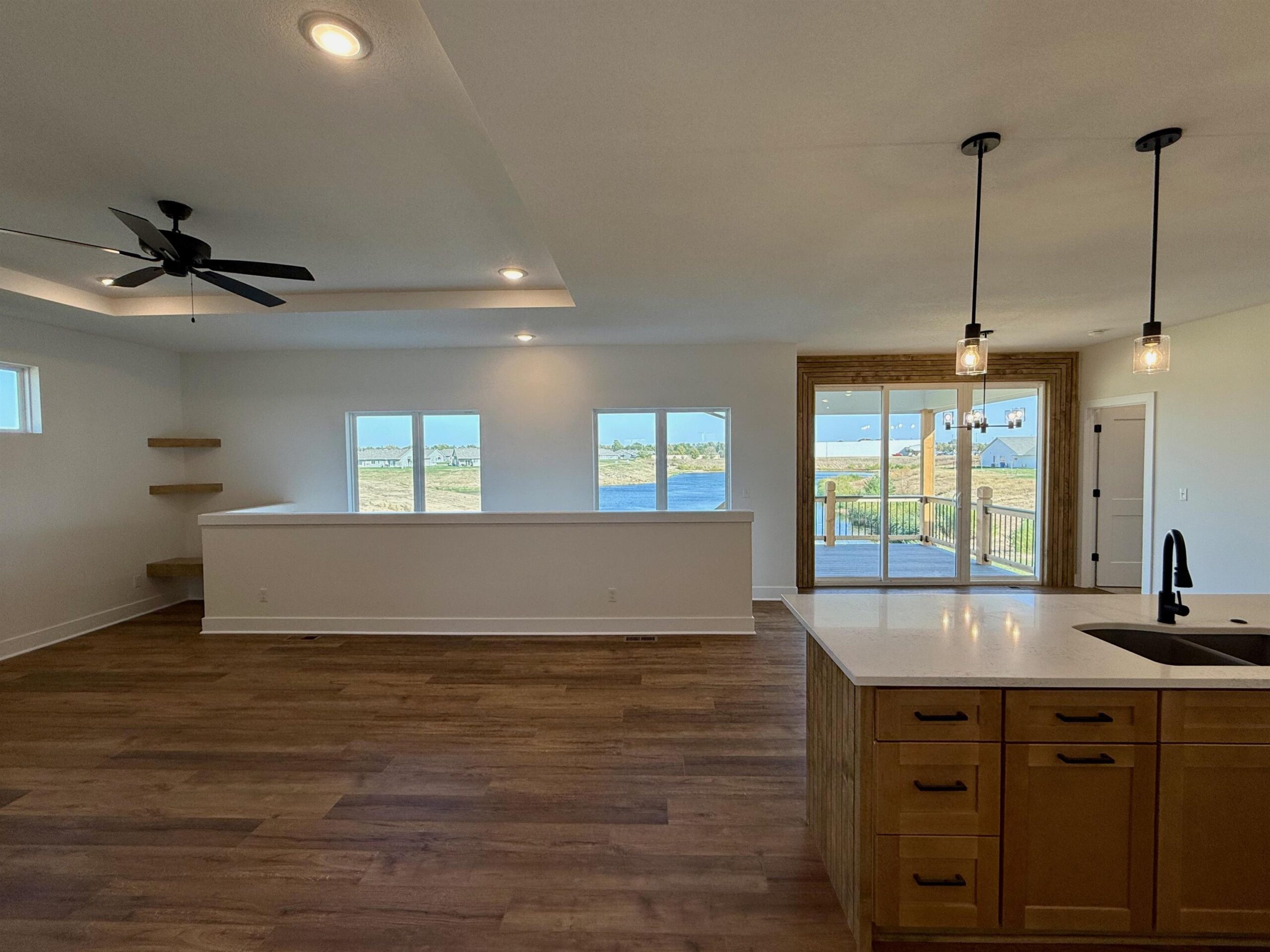 - Description: Back by popular demand, the Baby Bella Plan by RJ Castle Custom Homes, nestled in a peaceful cul-de-sac on a picturesque lake lot. This stunning residence boasts four spacious bedrooms and three beautifully appointed bathrooms, making it the perfect family haven. The heart of the home features a cozy living room with a striking marble tile fireplace, ideal for gatherings or quiet evenings. The rear-facing kitchen, complete with a walk-in pantry, seamlessly blends functionality and style, catering to both culinary enthusiasts and everyday living. Step outside onto the covered deck, where you can relax and take in the serene views, with convenient steps leading down to a charming ground-level patio. The luxurious master suite is a true retreat, featuring a full tile shower for an indulgent experience. Plus, the fully finished lower level with walk-up wet bar offers endless possibilities for entertainment and relaxation. Experience lakeside living at its finest in this remarkable new home here in beautiful Watermarke! Some information may be estimated, and is not guaranteed, please verify schools with USD262.