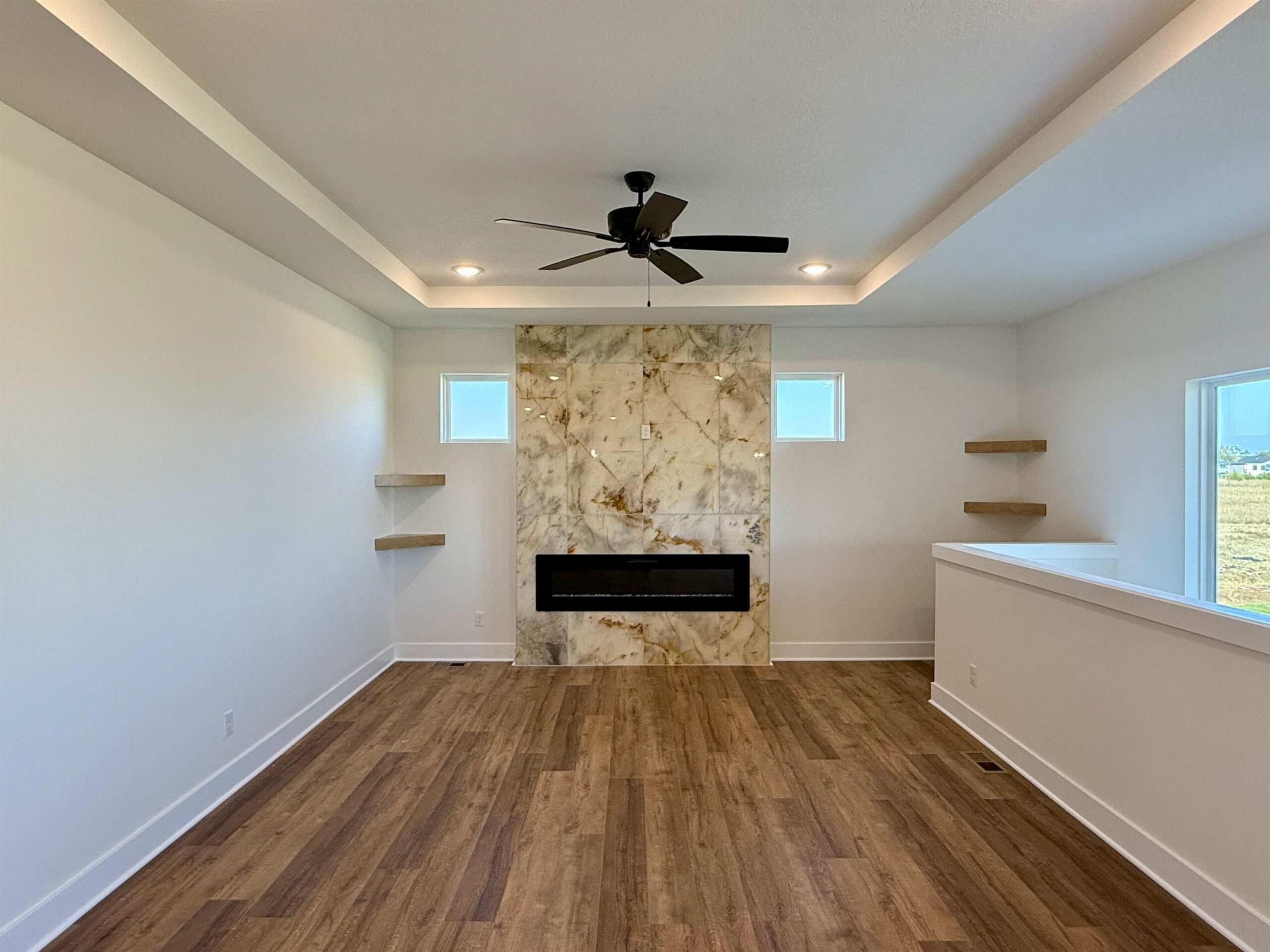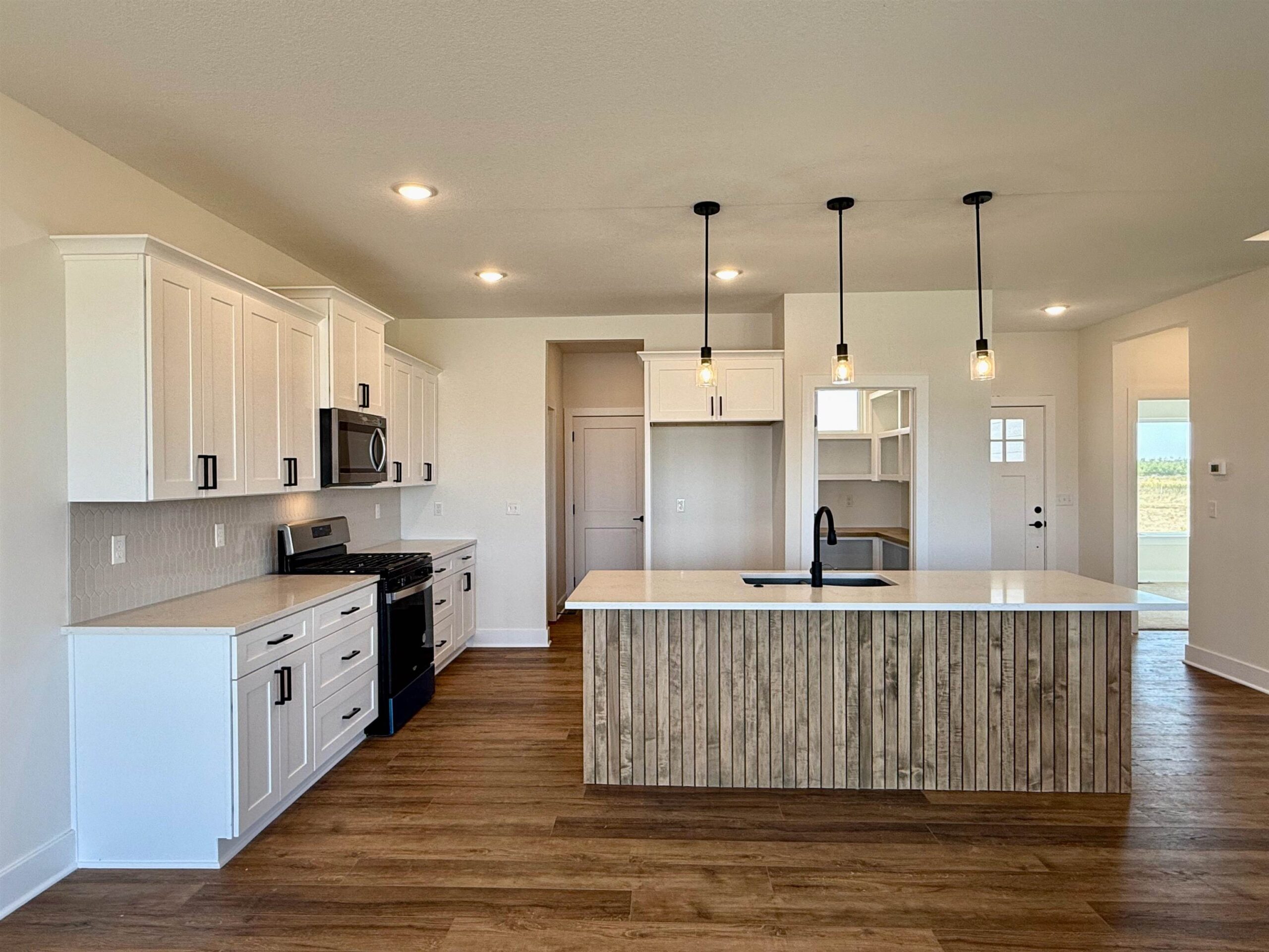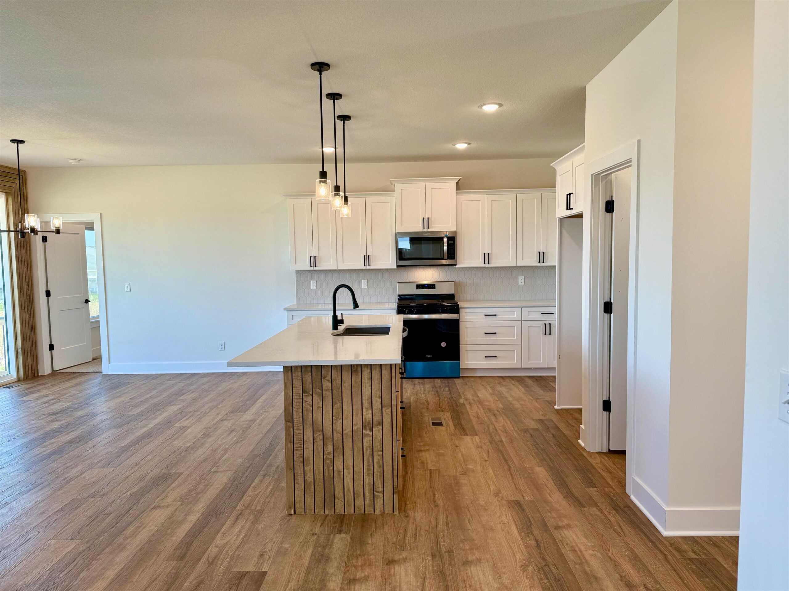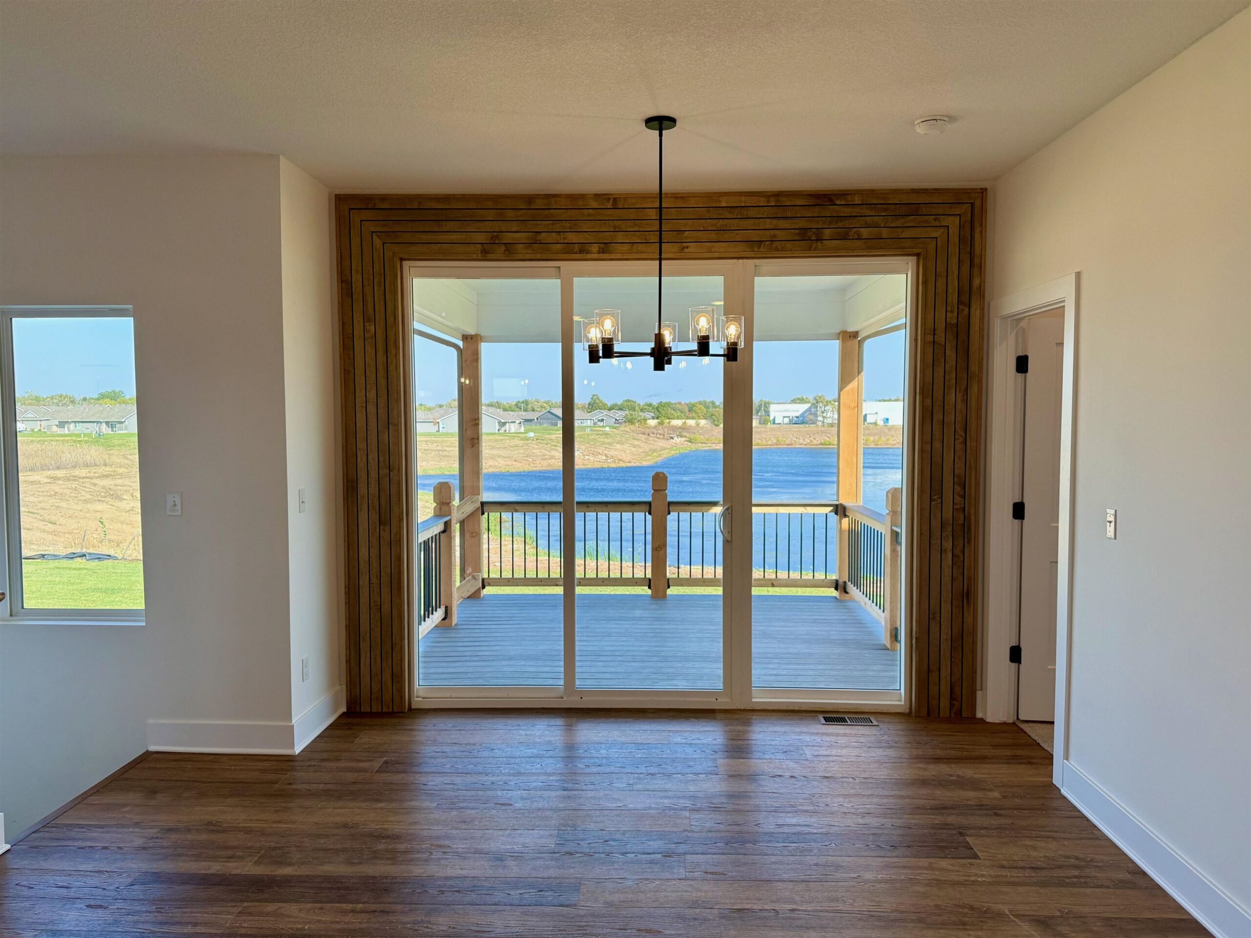 - Description: Back by popular demand, the Baby Bella Plan by RJ Castle Custom Homes, nestled in a peaceful cul-de-sac on a picturesque lake lot. This stunning residence boasts four spacious bedrooms and three beautifully appointed bathrooms, making it the perfect family haven. The heart of the home features a cozy living room with a striking marble tile fireplace, ideal for gatherings or quiet evenings. The rear-facing kitchen, complete with a walk-in pantry, seamlessly blends functionality and style, catering to both culinary enthusiasts and everyday living. Step outside onto the covered deck, where you can relax and take in the serene views, with convenient steps leading down to a charming ground-level patio. The luxurious master suite is a true retreat, featuring a full tile shower for an indulgent experience. Plus, the fully finished lower level with walk-up wet bar offers endless possibilities for entertainment and relaxation. Experience lakeside living at its finest in this remarkable new home here in beautiful Watermarke! Some information may be estimated, and is not guaranteed, please verify schools with USD262.