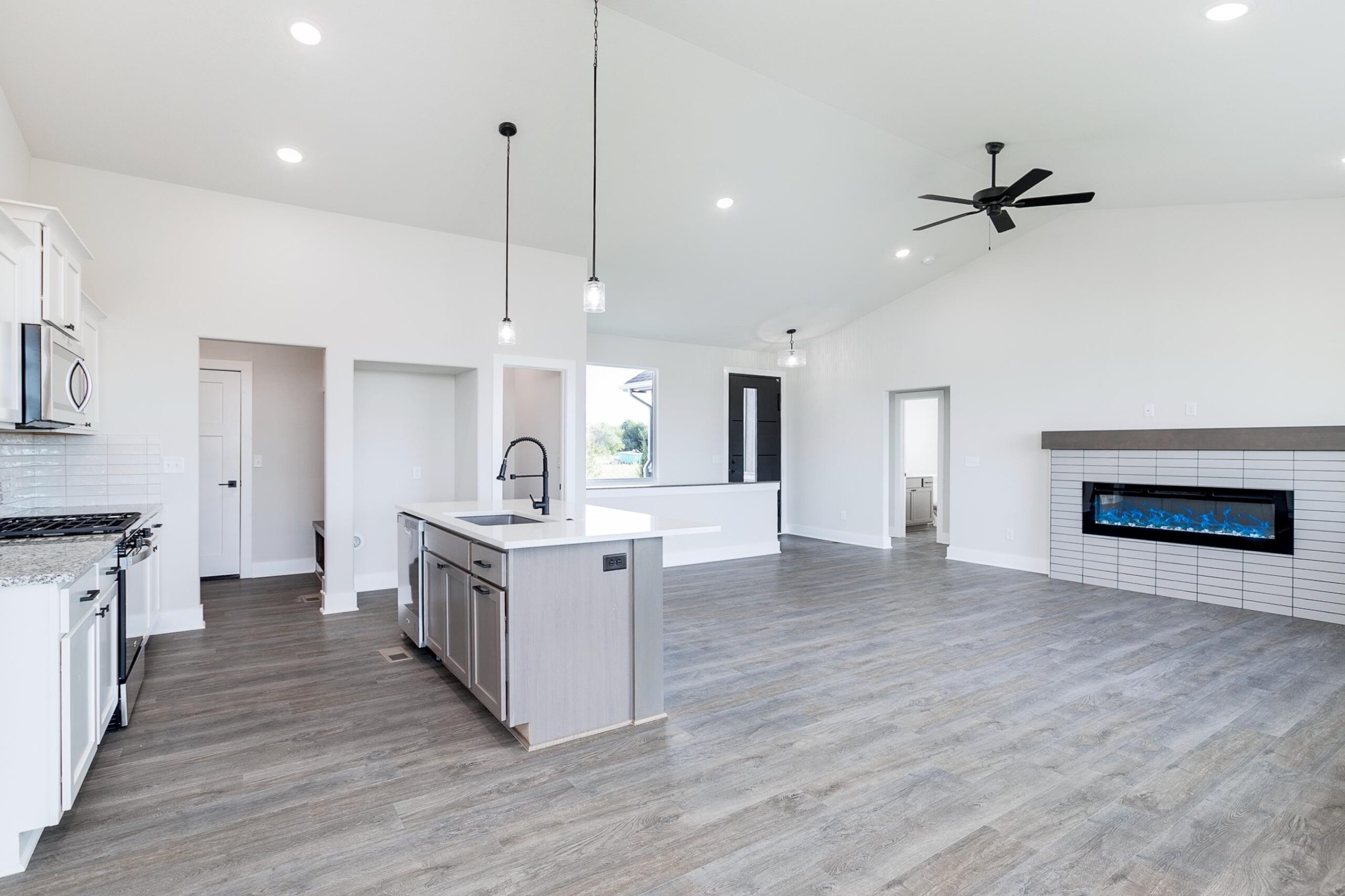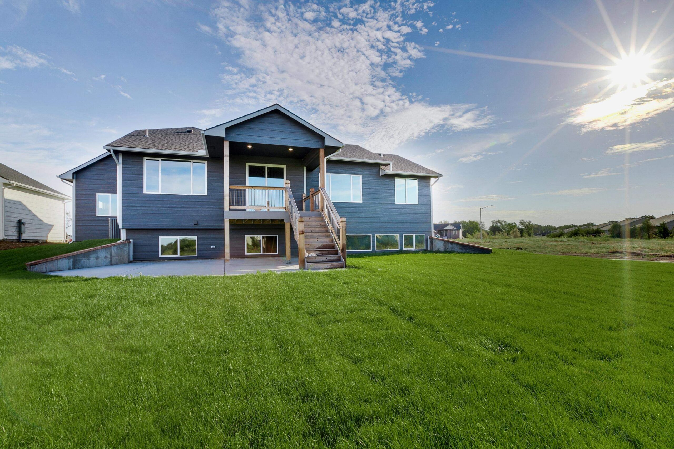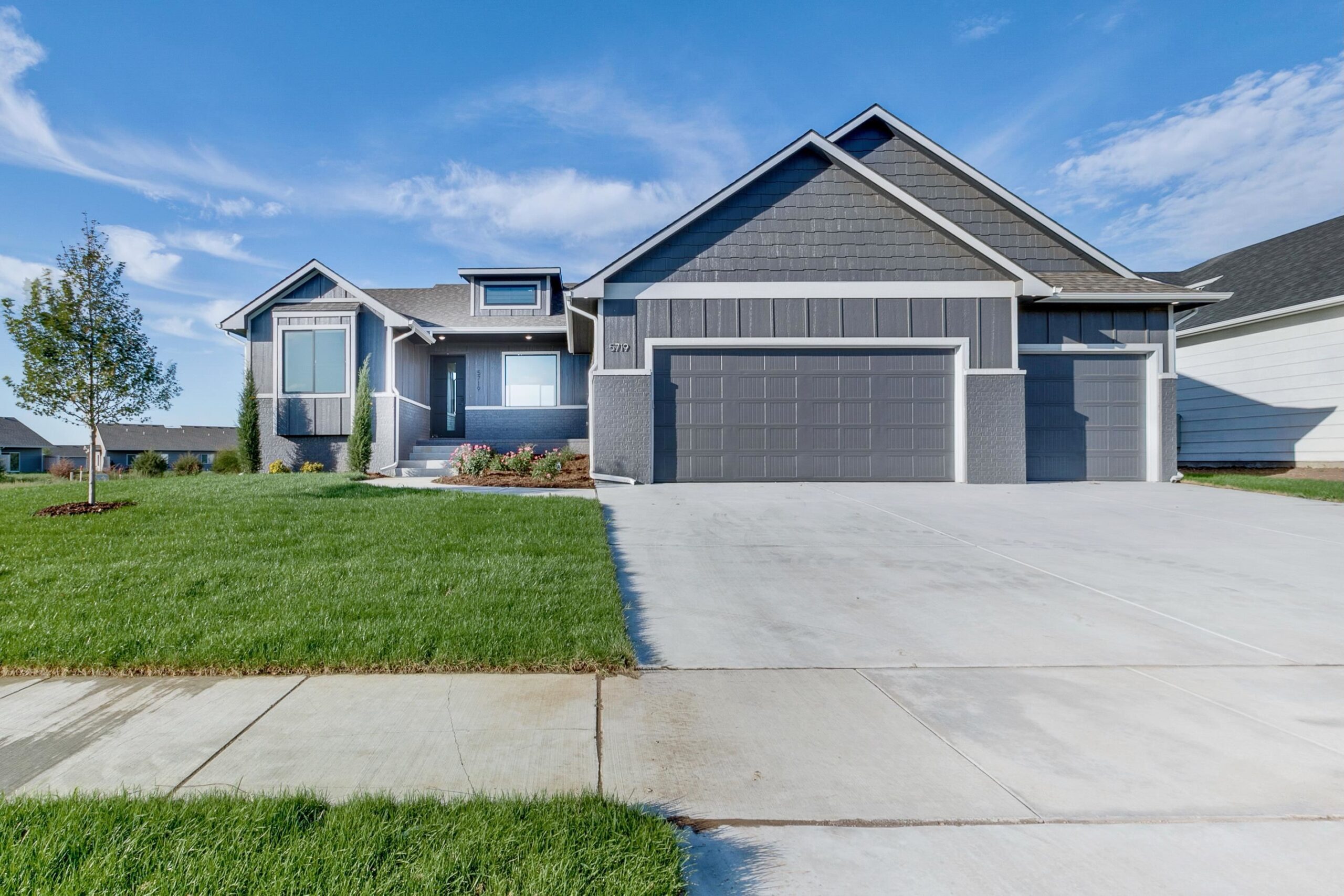 - Description: Welcome to The Delaware Plan by Relph Construction, a stunning home nestled on a serene lake lot, just a short stroll from the neighborhood pool, playground, and basketball court. This beautifully designed home boasts a spacious living room with vaulted ceilings, LVP flooring, an electric fireplace, and large windows that fill the space with natural light. The well-appointed kitchen features a gas range, hard surface countertops, and a generous walk-in pantry, perfect for the chef in the family. The adjoining dining area opens to a covered composite deck, with steps down to a ground-level patio and fenced backyard, creating an ideal space for outdoor entertaining. The luxurious master suite offers a private retreat with a large bedroom, a spa style bath with tile shower, and a walk-in closet conveniently connected to the laundry room. The main floor is complete with 2 additional bedrooms accompanied by a full bath. The fully finished lower level is an entertainer's dream, complete with an expansive family room featuring a wet bar, two large bedrooms, a full bath, and ample storage space. Situated in the city of Wichita within the Valley Center School District, this home provides the perfect blend of modern living and exceptional convenience. Don’t miss the opportunity to make this stunning property yours! Some information may be estimated and is not guranteed. Please verify schools with USD 262.
