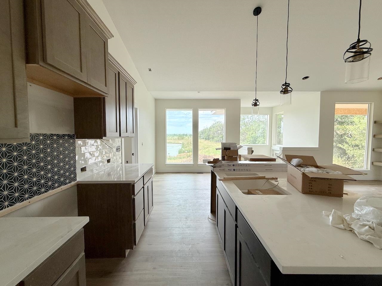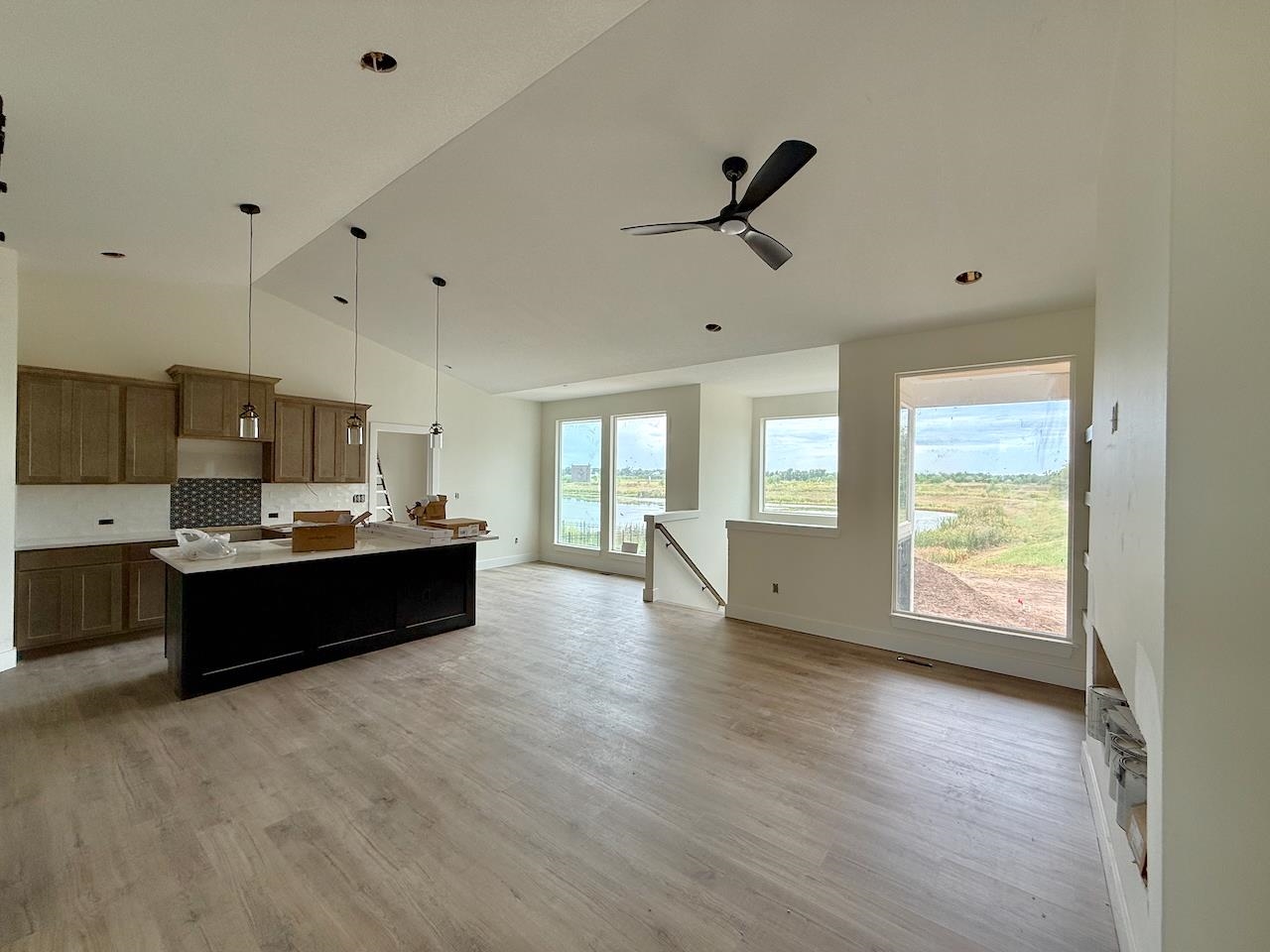- Description: Discover the Anne Marie Plan by Homes-R-Us—where timeless architecture meets modern comfort in a truly one-of-a-kind lakefront setting. Nestled on a unique lot bordered by HOA green space and a natural land bridge between two serene lakes, this home is surrounded by mature trees offering privacy and picturesque views. Enjoy vaulted ceilings, LVP flooring, and a cozy electric fireplace in the spacious living room. The gourmet kitchen boasts quartz countertops, abundant cabinetry, and a walk-in pantry. A generous dining area showcases large picture windows framing lake and wooded views. The luxurious primary suite features a dual vanity, tile shower, and walk-in closet with seasonal hanging. Two additional bedrooms and a full hall bath complete the main floor. The mid-level walk-out leads to a sprawling covered patio—your private retreat among the trees. The basement is ready for your vision, with a proposed layout including a family room, wet bar, 2 bedrooms, and full bath. Choose to finish it with the builder or create instant equity over time. Just a short stroll to the neighborhood pool, playground, and basketball court—this home has it all! This home is currently under construction and pricing is subject to change without notice prior to a contract. Some information may be estimated and is not guaranteed. Please verify schools with USD 262.