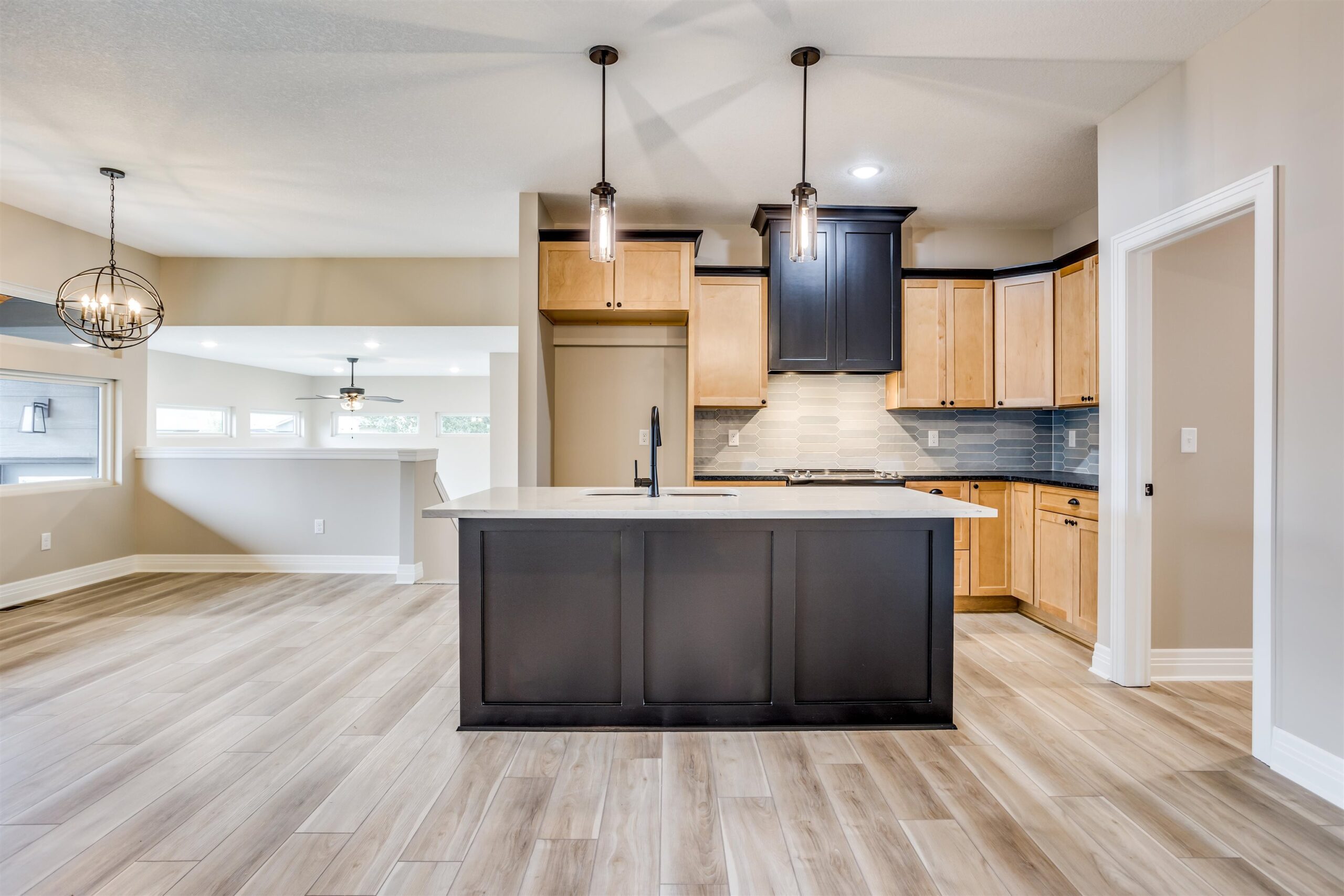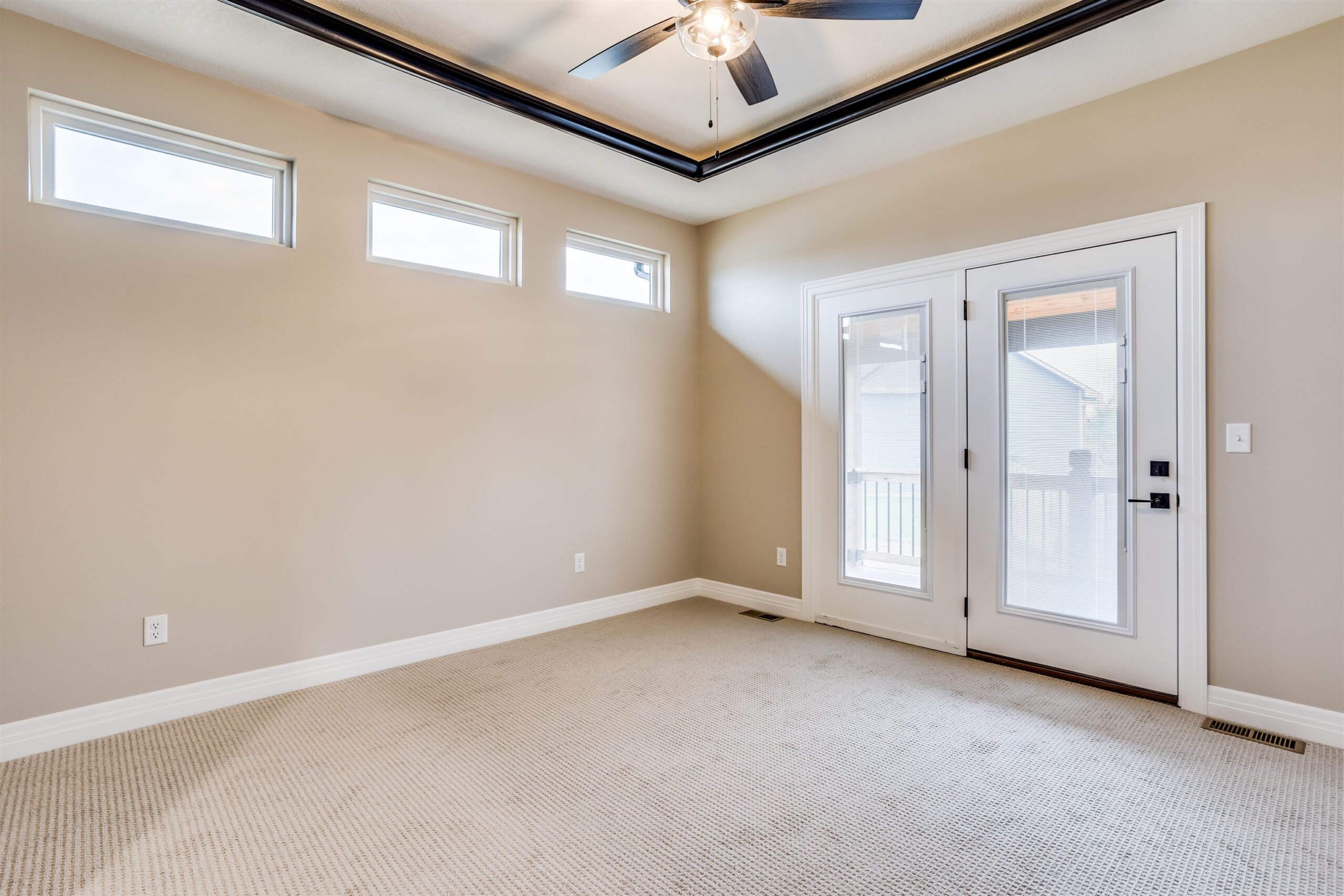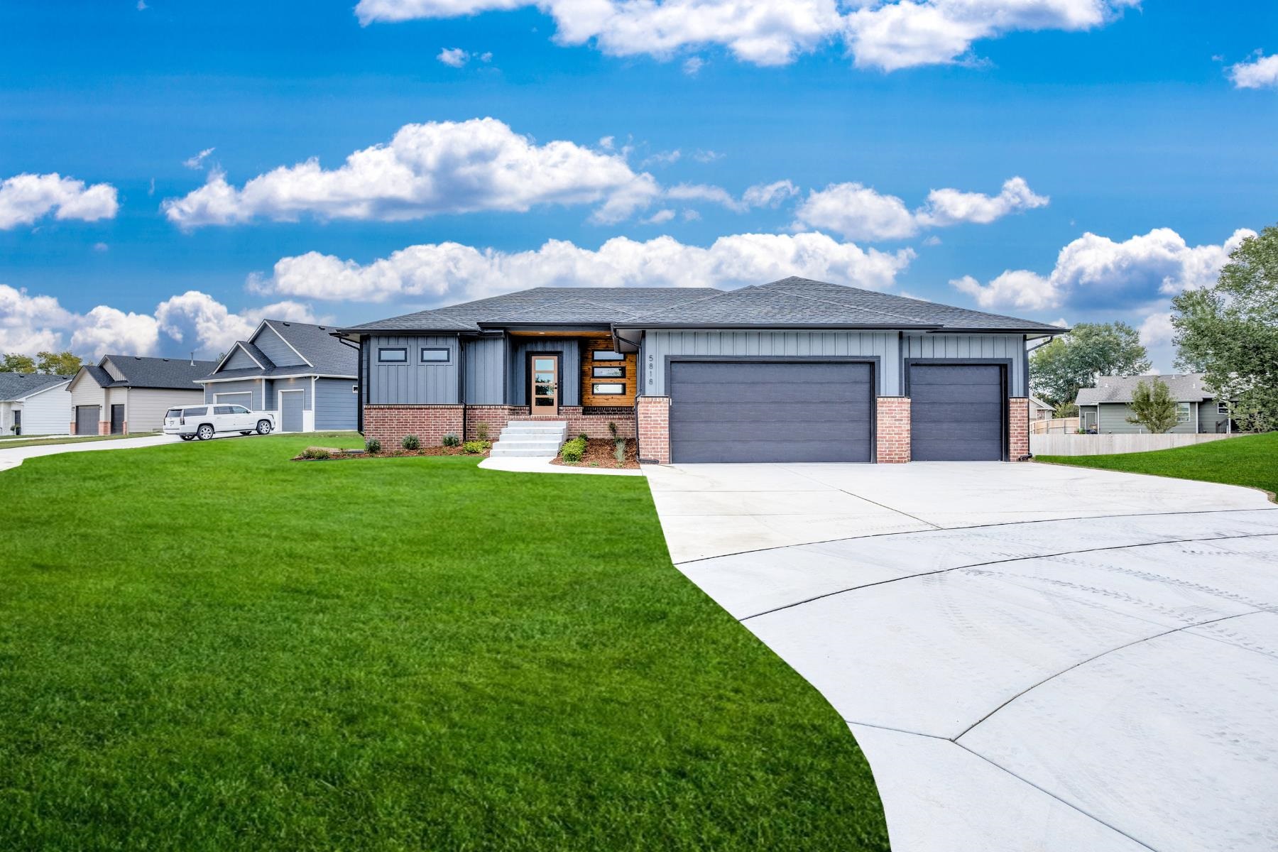 - Description: This stunning flex-plan combines the character and charm you would see in the classic homes of yesterday with the modern luxury features and finishes you expect to see today. With multiple living spaces…both indoors and out, this gorgeous home is perfect for gathering, entertaining, and just plain living! Featuring a spacious living room with a beamed/tray ceiling, a well-appointed kitchen with Butler’s pantry featuring additional workspace, appliance counter, and second oven, and a separate dining area. The Master Suite is next-level featuring a private, covered deck from the master bedroom, a private bath complete with dual vanities, a soaker tub, tile shower, and a massive walk-in closet with built in storage. The flex-level features zero-entry access from the 3-car garage and is finished to include an expansive family room with large picture windows and access to the covered back patio, along with 2 additional bedrooms accompanied by a hall bath. The unfinished basement offers an incredible opportunity to grow into this home and to build some significant sweat equity. The best thing about this awesome home is you can move right and start enjoying life in one of Valley Center’s premier neighborhoods…Watermarke. So close to shopping and dining options, near all the major highways, and so convenient to the highly sought after Valley Center Schools! Sod, sprinklers, and irrigation well are included. The Seller is currently offering a 2-1 Buydown on this home! Example of this Buydown Program is in the Associated Documents. Seller is also open to taking your current home on trade for this home! Some information may be estimated…information deemed reliable but not guaranteed. Please verify schools with USD 262.