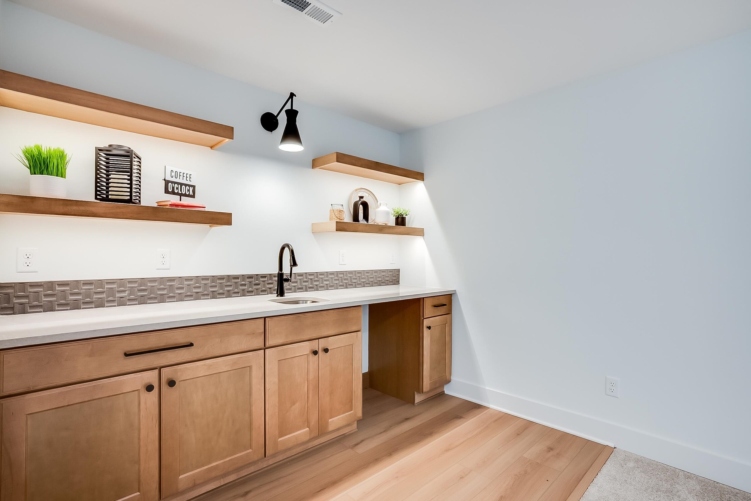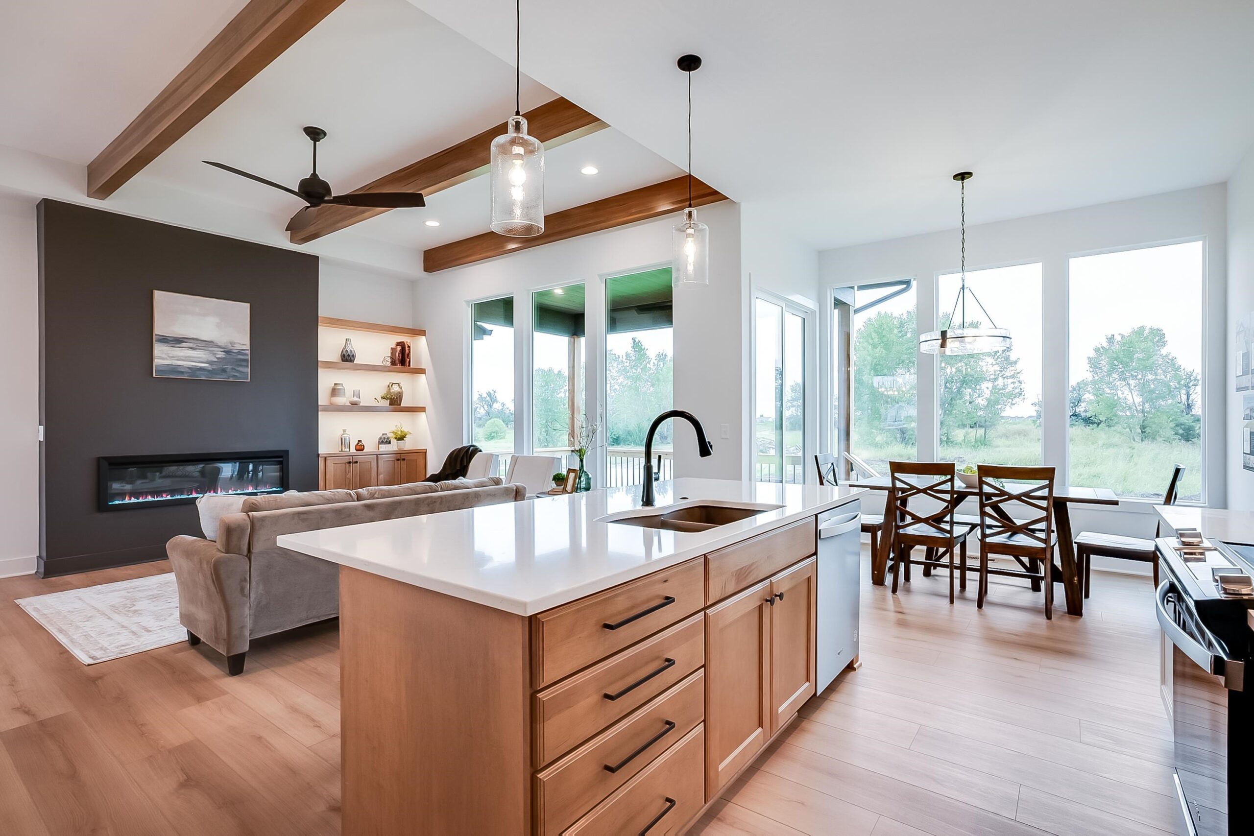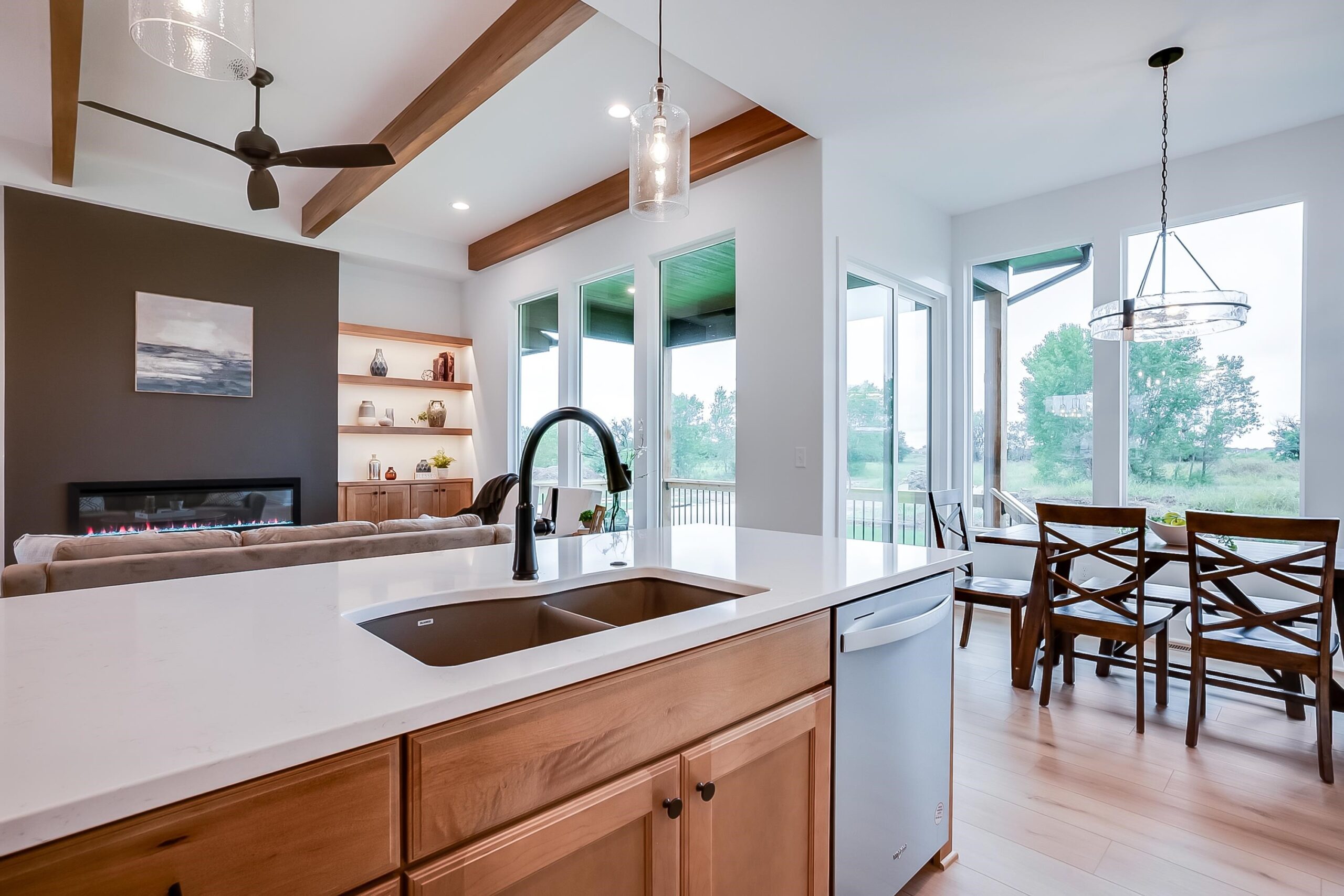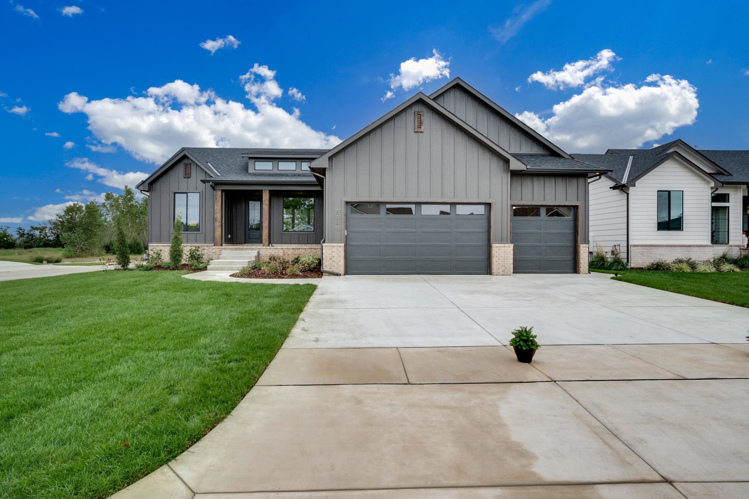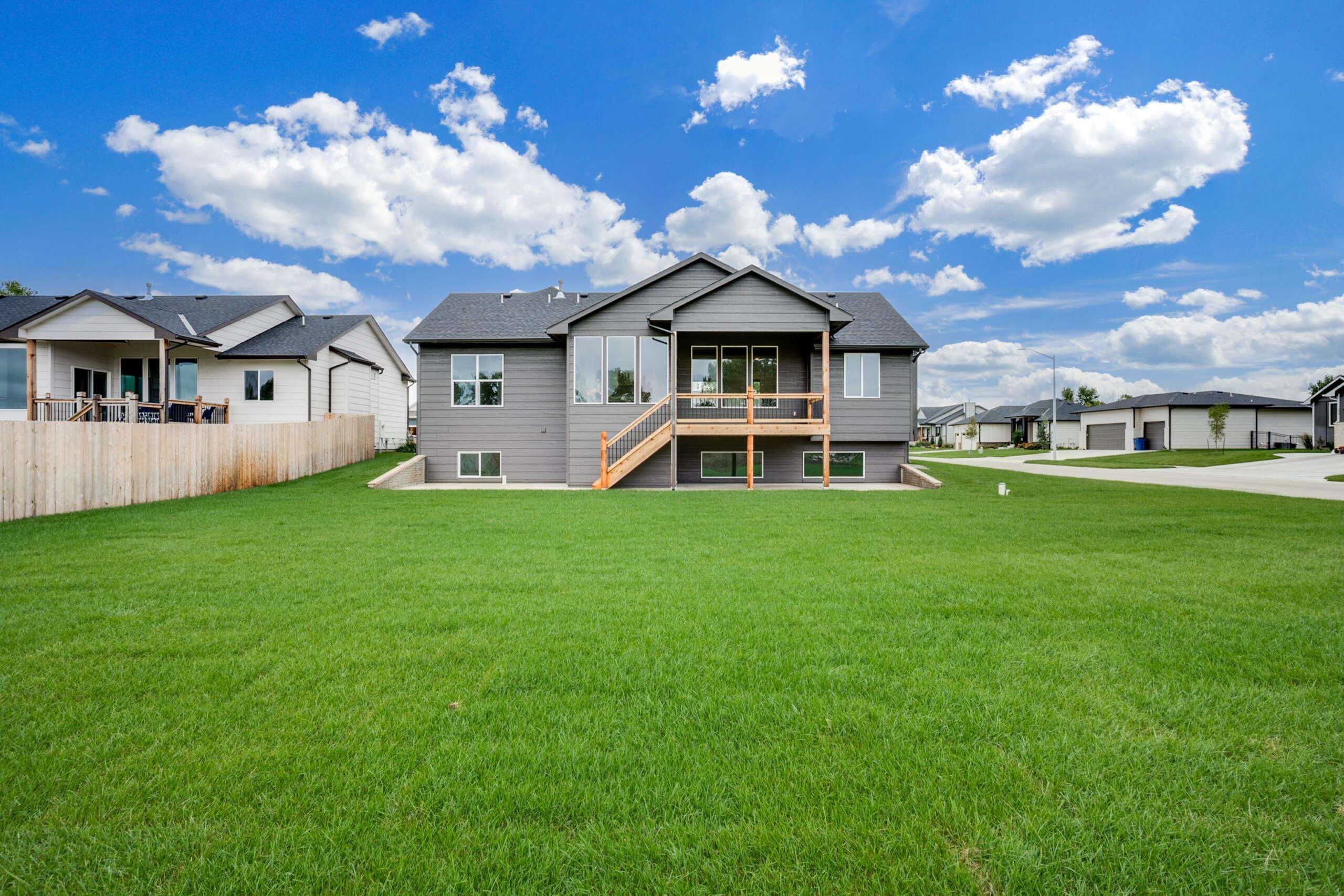 - Description: Welcome to The Oakley Plan by M&M Custom Construction—a stunning new home perfectly positioned on a spacious corner, cul-de-sac lot in the coveted Watermarke community. With a desirable Wichita address and access to the highly rated Valley Center School District, this home offers the best of both worlds: city convenience and suburban charm. Just a short stroll from the neighborhood pool, playground, and multiple stocked fishing lakes, this home offers more than just a place to live—it offers a lifestyle. Step inside to a beautifully designed main floor, where natural light floods the spacious living room through large picture windows. Enjoy custom touches like beamed tray ceilings, an electric fireplace flanked by built-in cabinets and floating shelves, and seamless flow into the heart of the home—the gourmet kitchen. Featuring quartz countertops, a custom-built range hood, a butler’s pantry with prep space, and a hidden storage pantry with appliance counter, this kitchen is as functional as it is elegant. The expansive dining area is perfect for gathering with family and friends, with direct access to a large covered deck and ground-level patio, ideal for outdoor entertaining. Retreat to your private Master Suite, complete with a generous bedroom, spa-inspired bath with dual vanity, oversized tile shower, and an enviable walk-in closet with seasonal hanging and direct access to the laundry room. Two additional main-floor bedrooms and a full hall bath complete this level. Downstairs, the fully finished lower level features a massive family room, wet bar, two large bedrooms, a full bath, and ample storage space—perfect for game nights, guests, or multi-generational living. With timeless curb appeal and thoughtful design throughout, The Oakley Plan is more than a home—it’s where memories are made. Schedule your private tour today and experience Watermarke living at its finest! Some information may be estimated and is not guaranteed. This home is currently under construction and pricing is subject to change without notice (before a contract is in place) Please verify schools with USD 262.