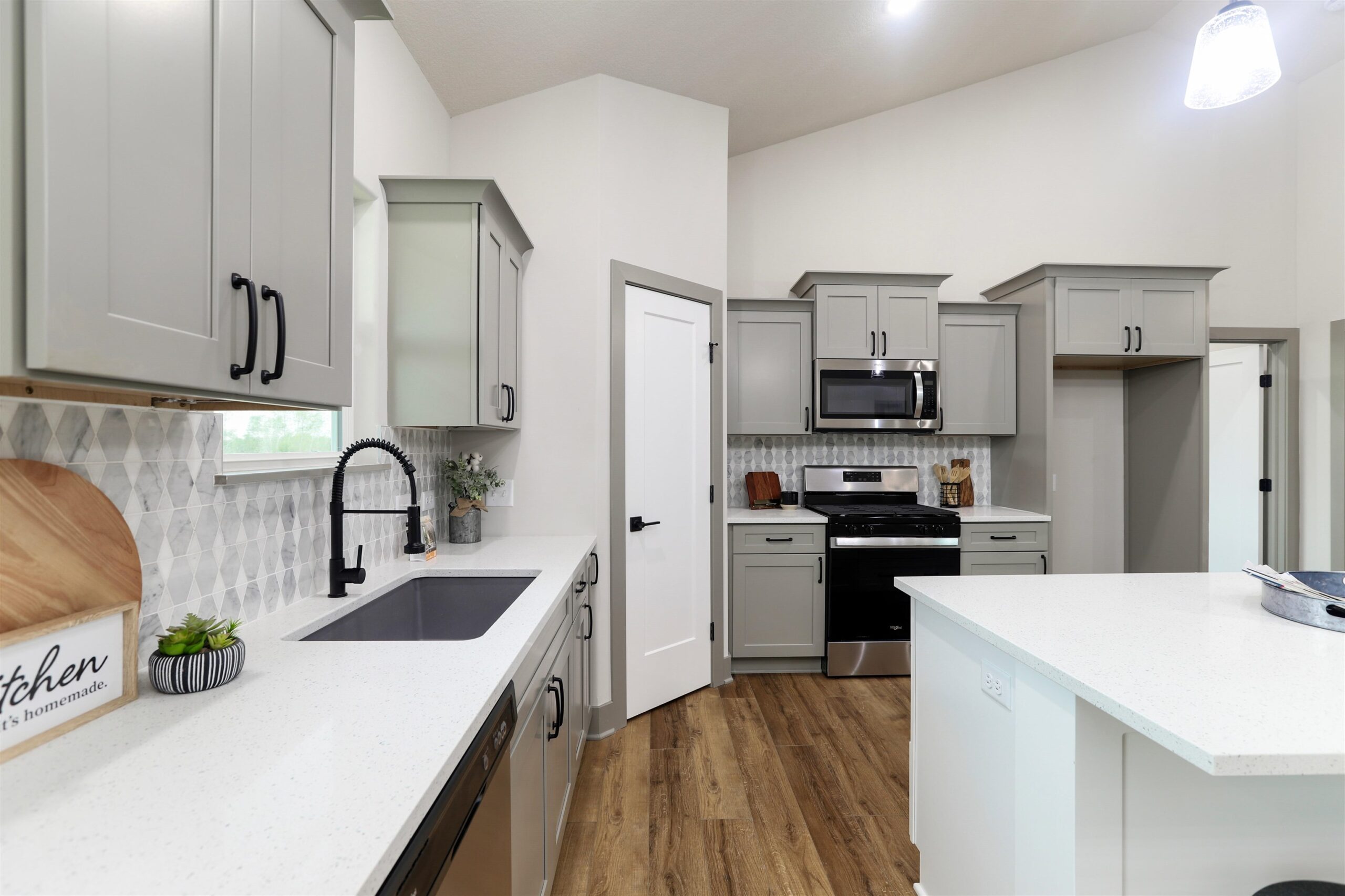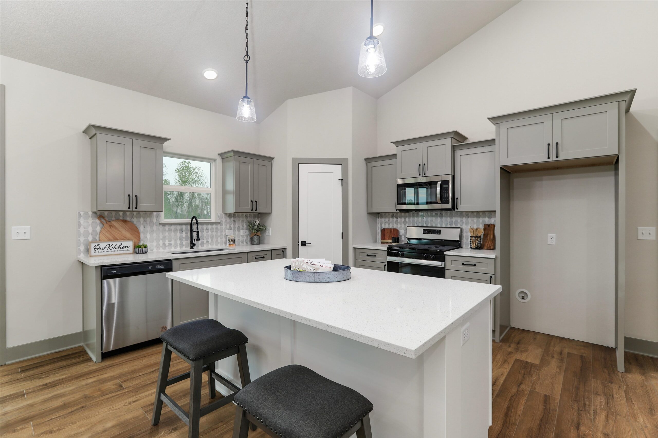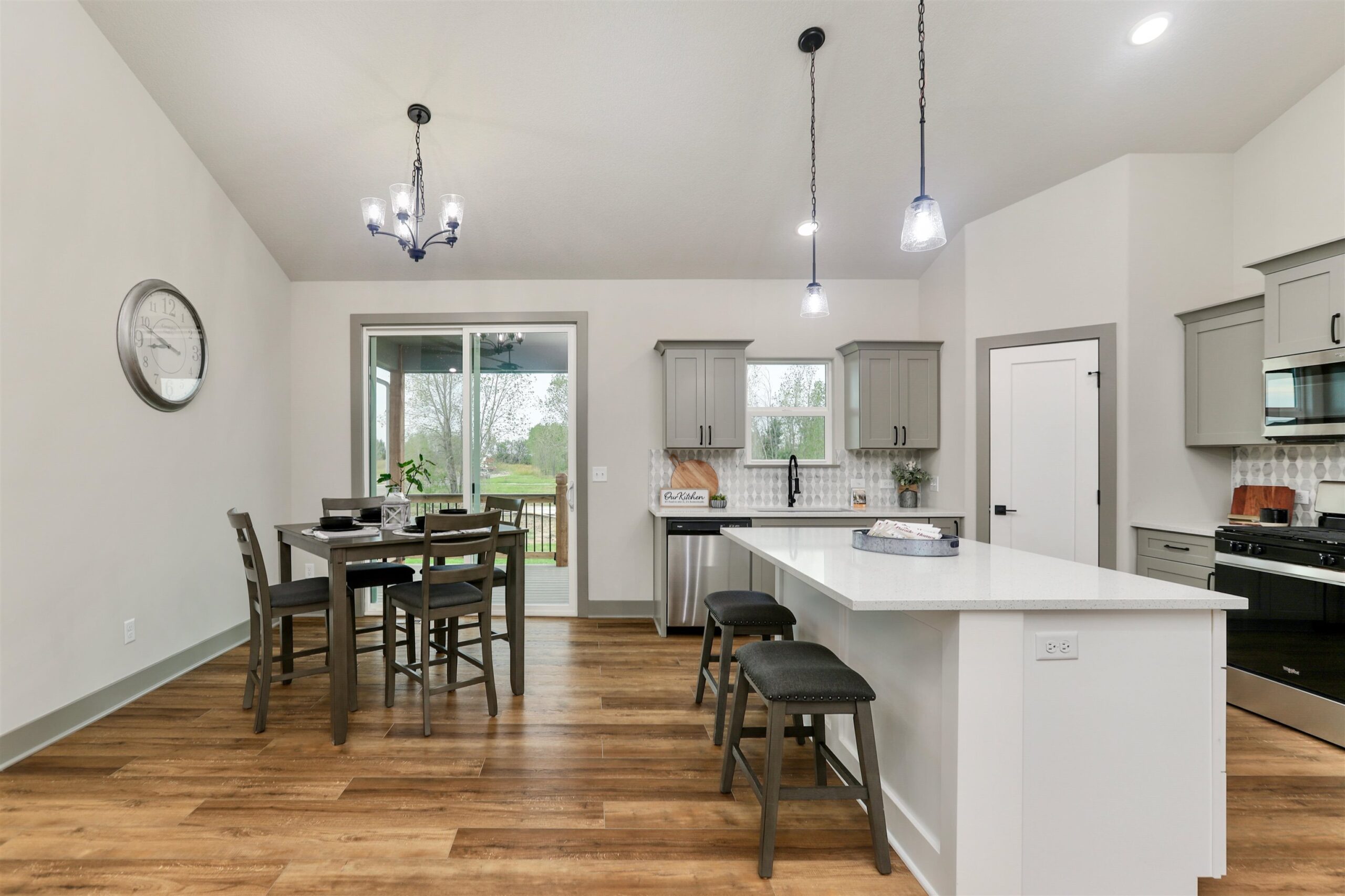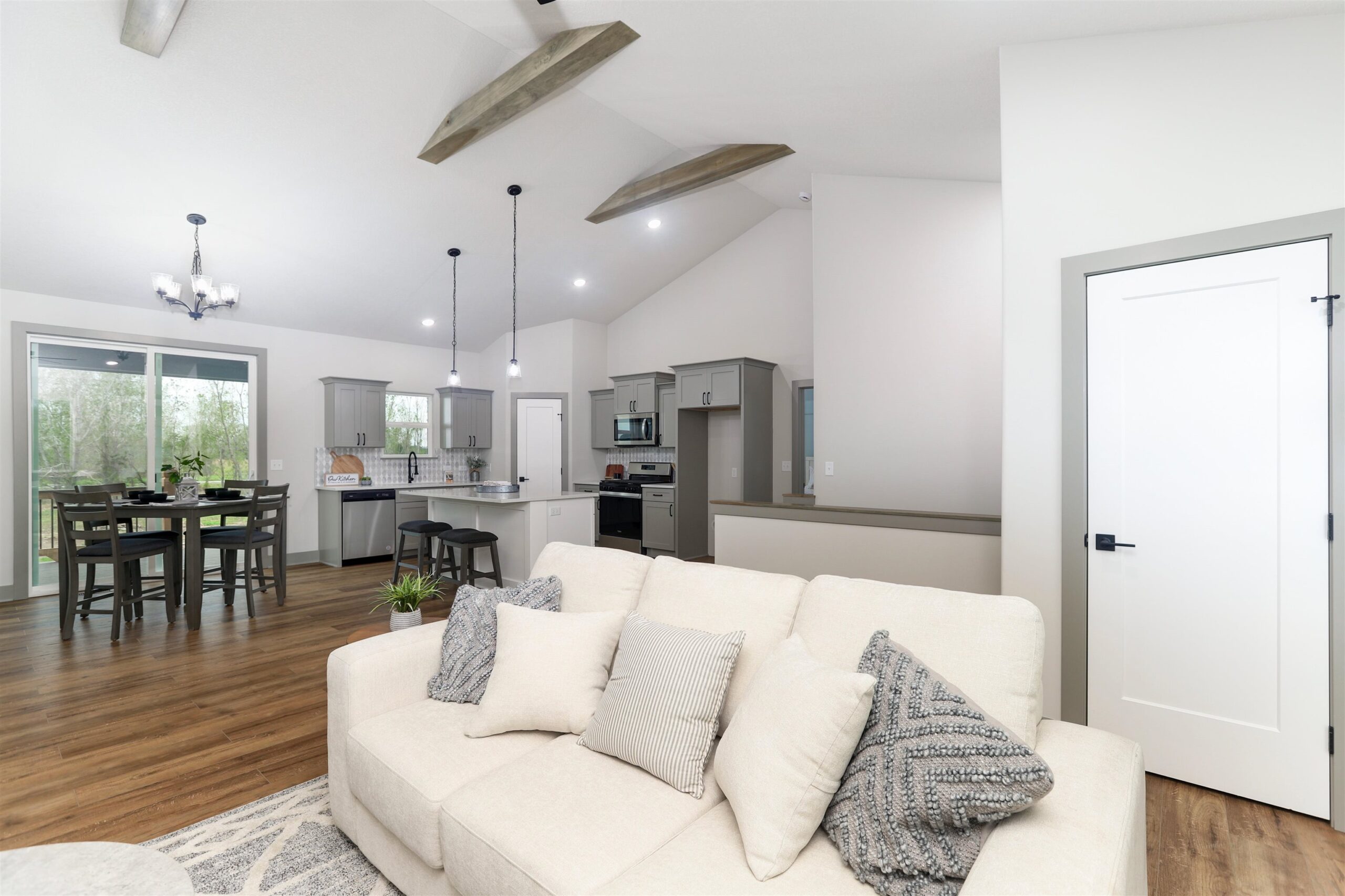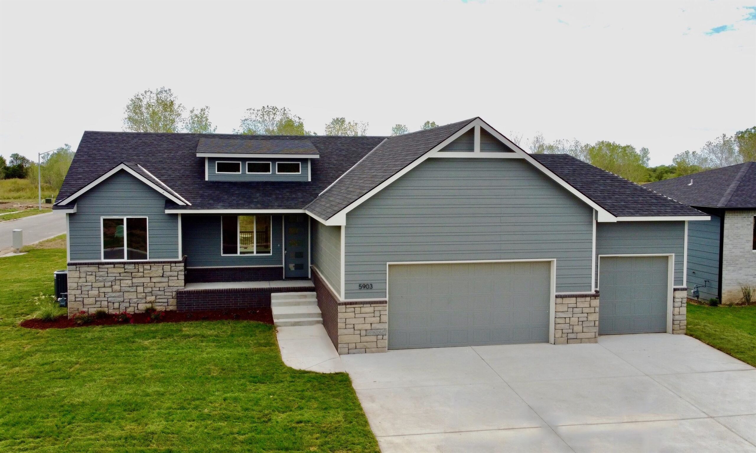 - Description: Relph Construction has done it again with this incredible, all-new plan! The main floor features vaulted, beamed ceilings over the main living area, a spacious living room with electric fireplace, a well-appointed kitchen with quartz countertops and walk-in pantry, a separate dining area with access to the covered 10’x12’ composite deck, a drop zone with built in storage bench conveniently located between the garage entrance and the laundry room, a luxurious owner’s suite including a walk-in closet with seasonal hanging and a private bath with a huge full tile shower! The main floor also includes 2 additional generously sized bedrooms accompanied by a hall bath. The fully finished walk-out lower level features a vast family room with luxury vinyl flooring, a walk-up wet bar, 2 large bedrooms, a full bath, and a separate finished game/theater room! Come see this stunning new home and everything else Watermarke has to offer, today! Some information may be estimated and is not guaranteed. Please verify schools with USD 262.