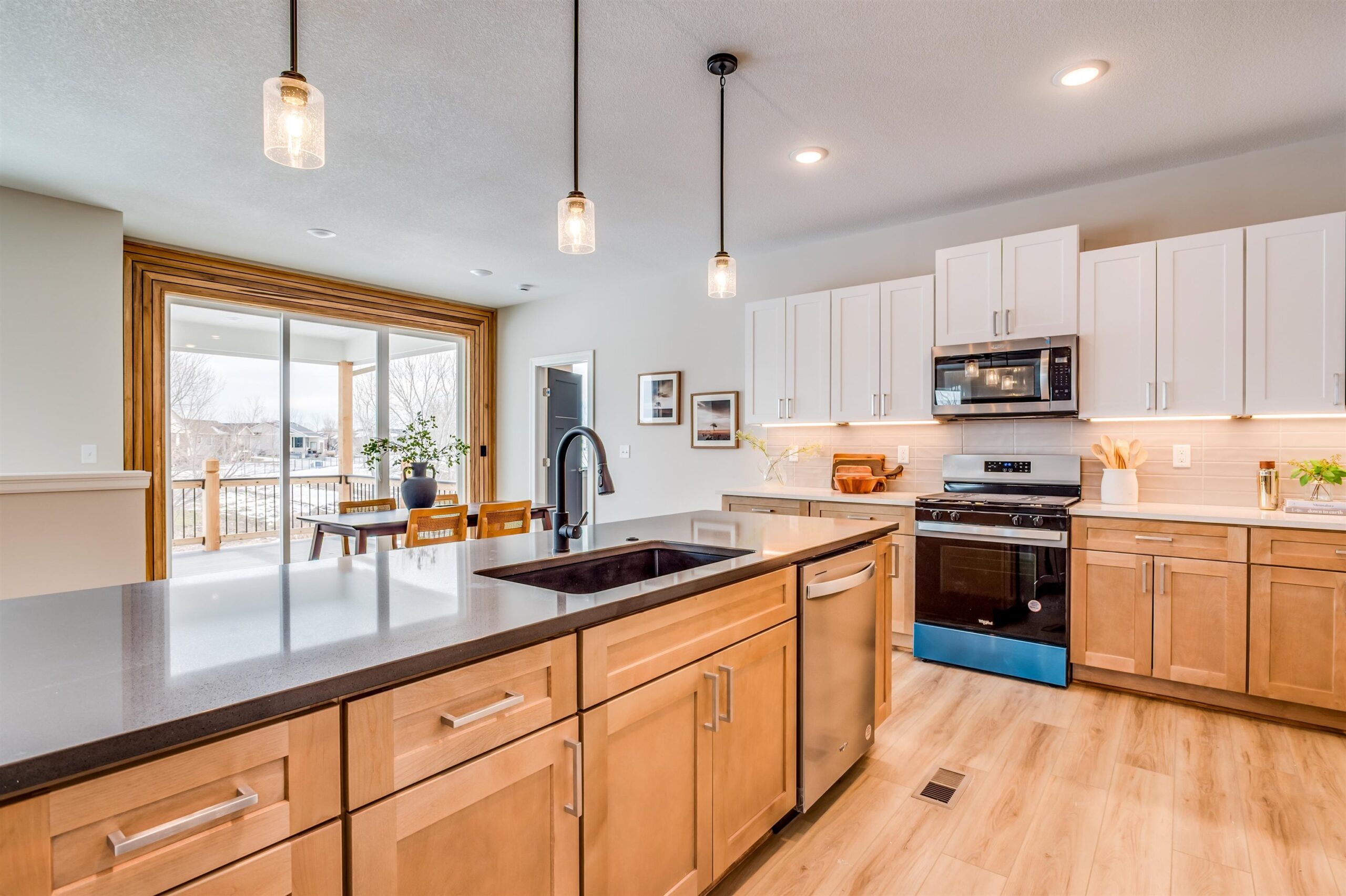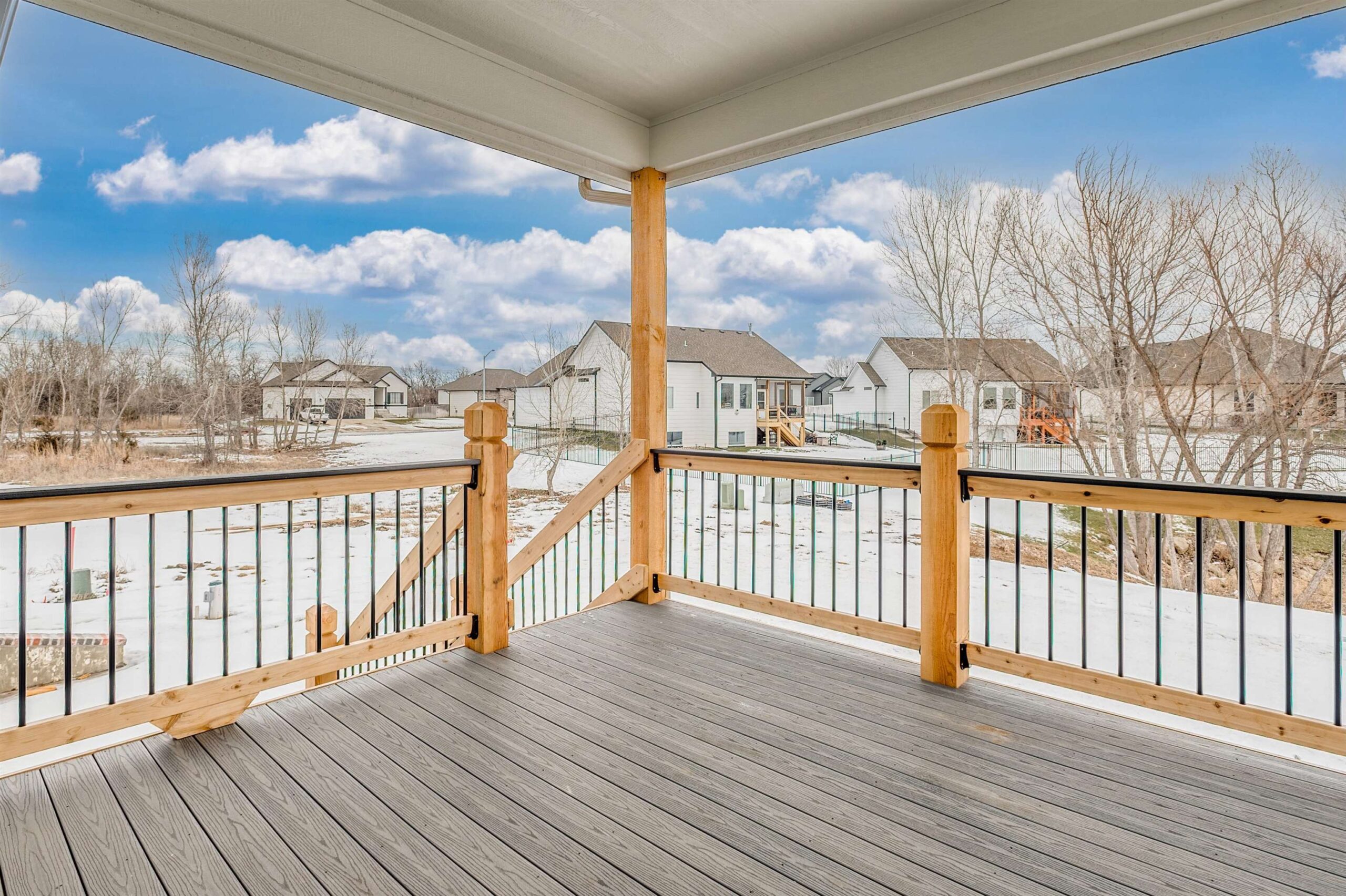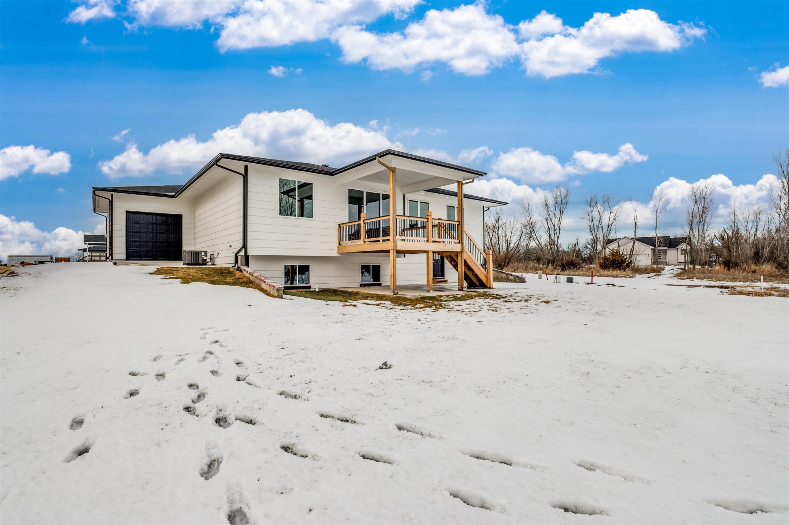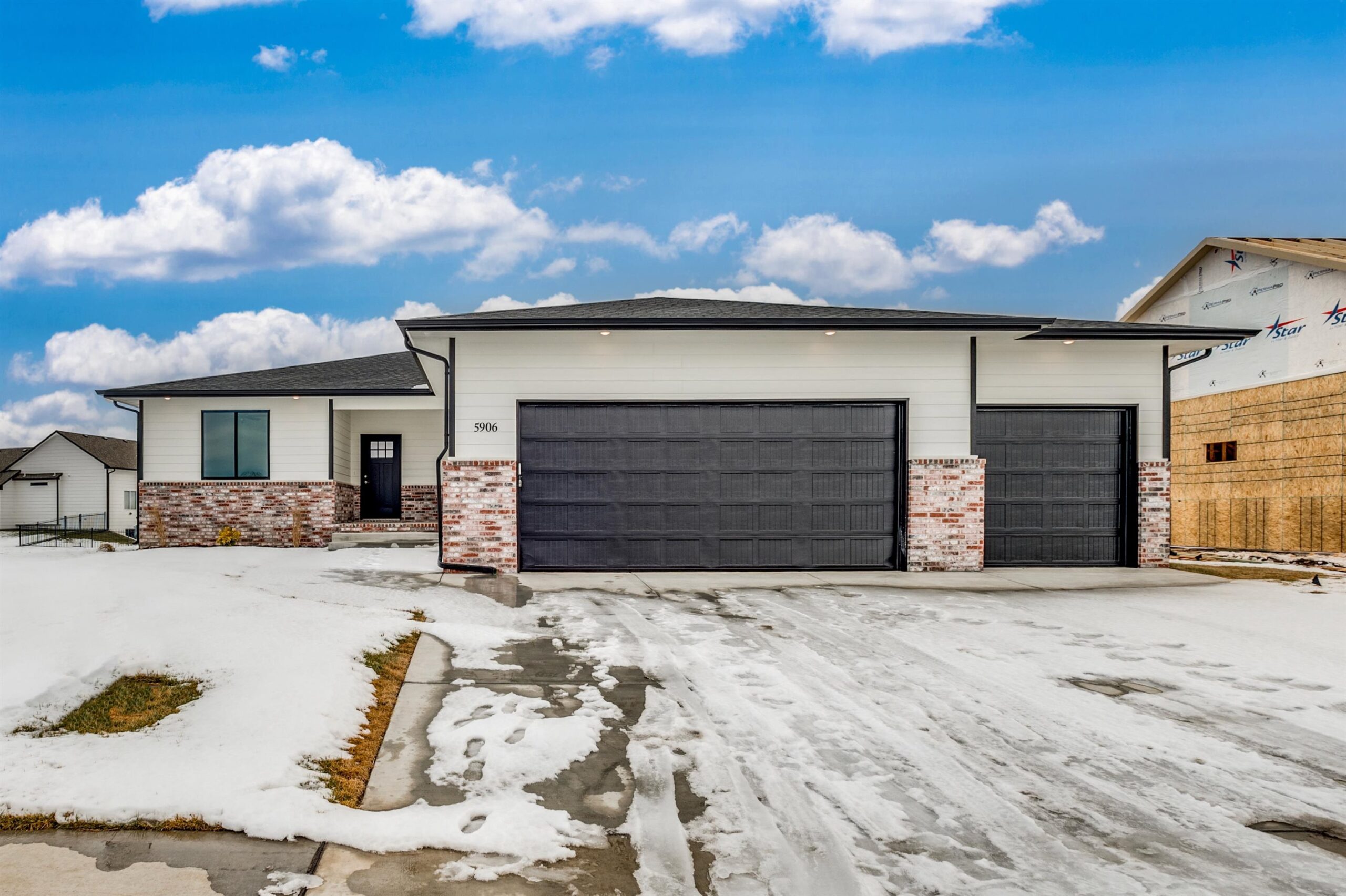 - Description: Back by popular demand, this Baby Bella Plan by RJ Castle Custom Homes offers an exceptional opportunity to live on a gorgeous lakefront lot in one of Wichita's premier neighborhoods—Watermarke. This stunning 4-bedroom, 3-bathroom home is designed for both comfort and style, featuring a spacious master suite with a private bath, full tile shower, and an expansive walk-in closet. The heart of the home is the open, light-filled living area, with a rear-facing kitchen complete with sleek quartz countertops, a walk-in pantry, and a seamless flow into the living room for easy entertaining. Step outside to enjoy a large covered deck that leads to a spacious ground-level patio, perfect for outdoor gatherings and enjoying the serene lake views. The fully finished lower level offers even more space to spread out, with a generous family room, a walk-up wet bar, 2 additional bedrooms, and a full bath. For added convenience, the 3-car garage includes an extra rear-facing garage door, offering easy access to the backyard with a concrete slab for parking or additional storage. Don't miss your chance to own this beautiful home in the coveted Watermarke community—where luxury living meets lakeside tranquility! Finished interior pictures are of a finished version of this plan previously built in Watermarke (Exact finishes will vary). Some information may be estimated and is not guaranteed. Please verify schools with USD 262.