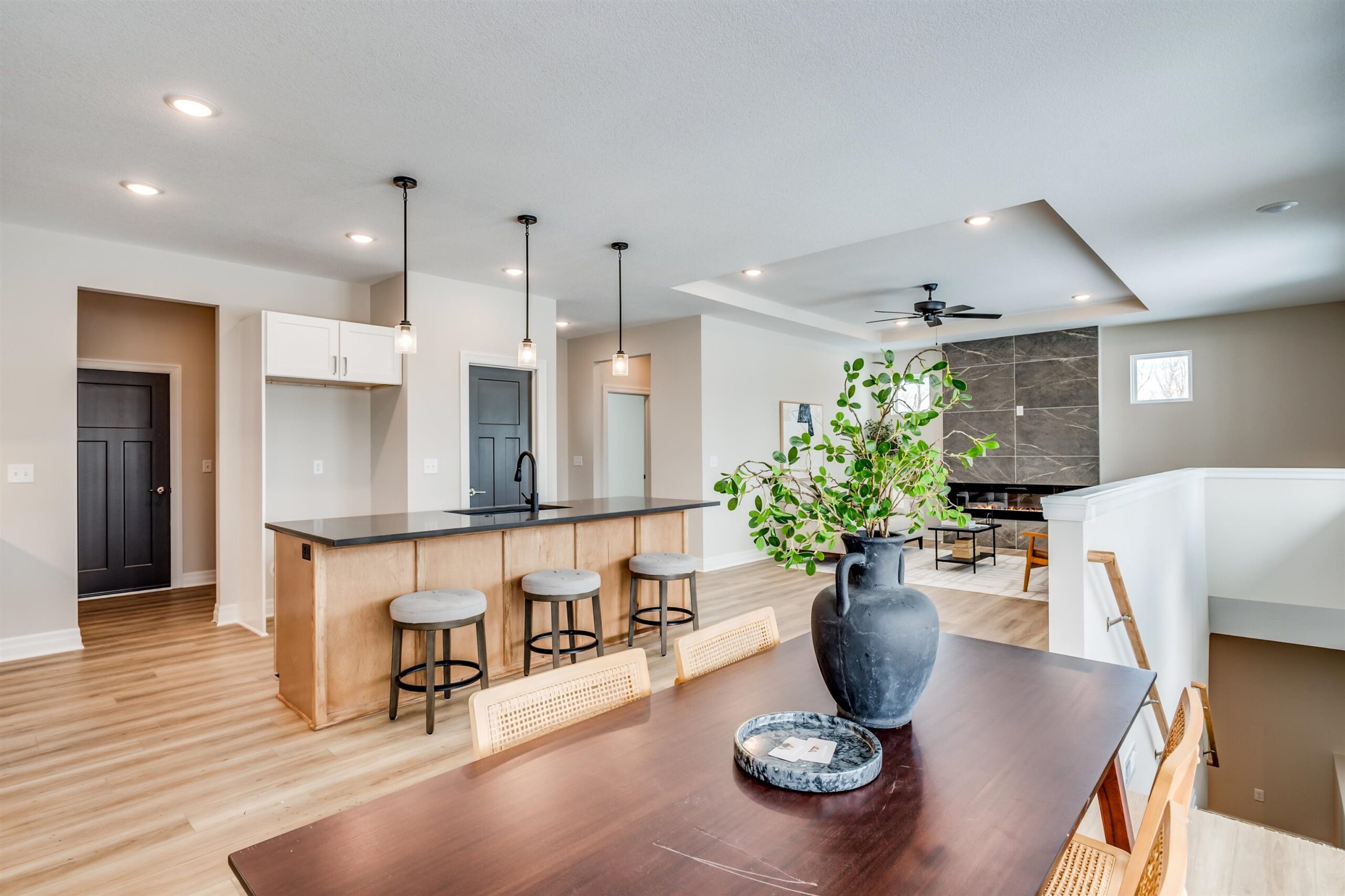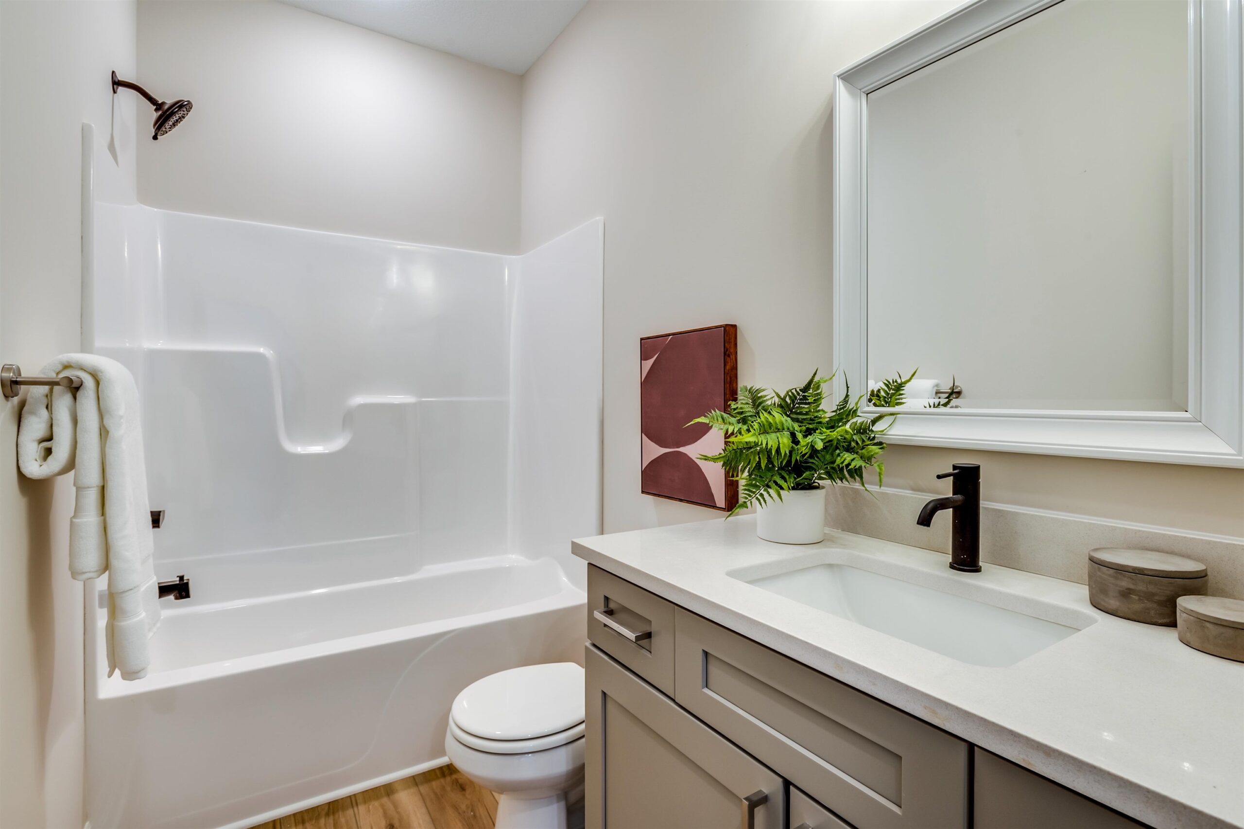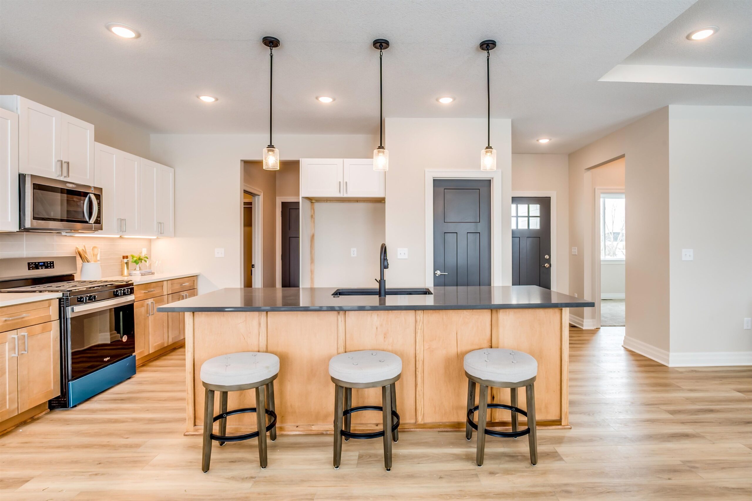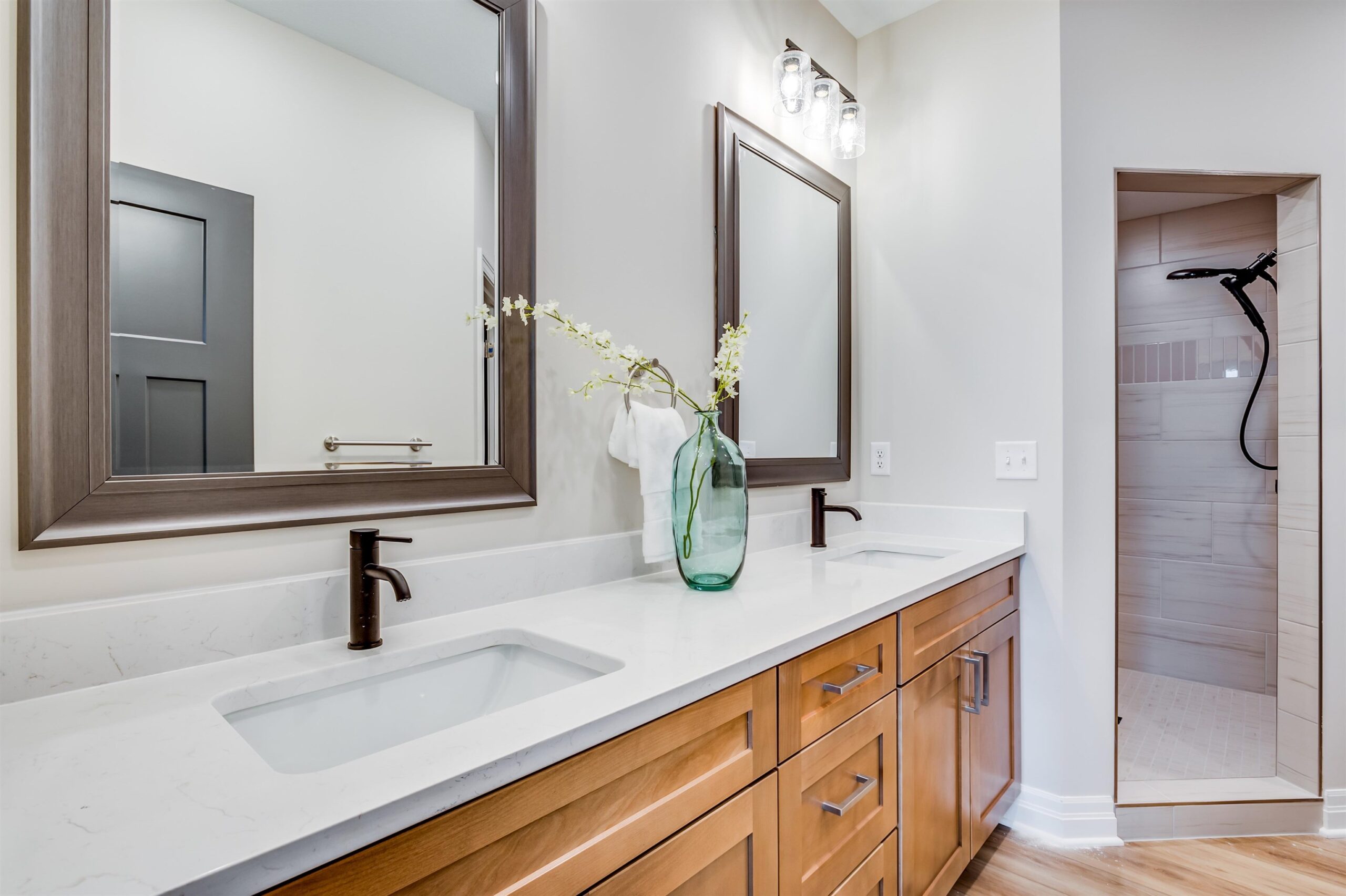 - Description: Back by popular demand, this Baby Bella Plan by RJ Castle Custom Homes offers an exceptional opportunity to live on a gorgeous lakefront lot in one of Wichita's premier neighborhoods—Watermarke. This stunning 4-bedroom, 3-bathroom home is designed for both comfort and style, featuring a spacious master suite with a private bath, full tile shower, and an expansive walk-in closet. The heart of the home is the open, light-filled living area, with a rear-facing kitchen complete with sleek quartz countertops, a walk-in pantry, and a seamless flow into the living room for easy entertaining. Step outside to enjoy a large covered deck that leads to a spacious ground-level patio, perfect for outdoor gatherings and enjoying the serene lake views. The fully finished lower level offers even more space to spread out, with a generous family room, a walk-up wet bar, 2 additional bedrooms, and a full bath. For added convenience, the 3-car garage includes an extra rear-facing garage door, offering easy access to the backyard with a concrete slab for parking or additional storage. Don't miss your chance to own this beautiful home in the coveted Watermarke community—where luxury living meets lakeside tranquility! Finished interior pictures are of a finished version of this plan previously built in Watermarke (Exact finishes will vary). Some information may be estimated and is not guaranteed. Please verify schools with USD 262.