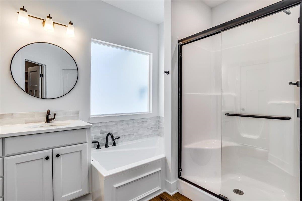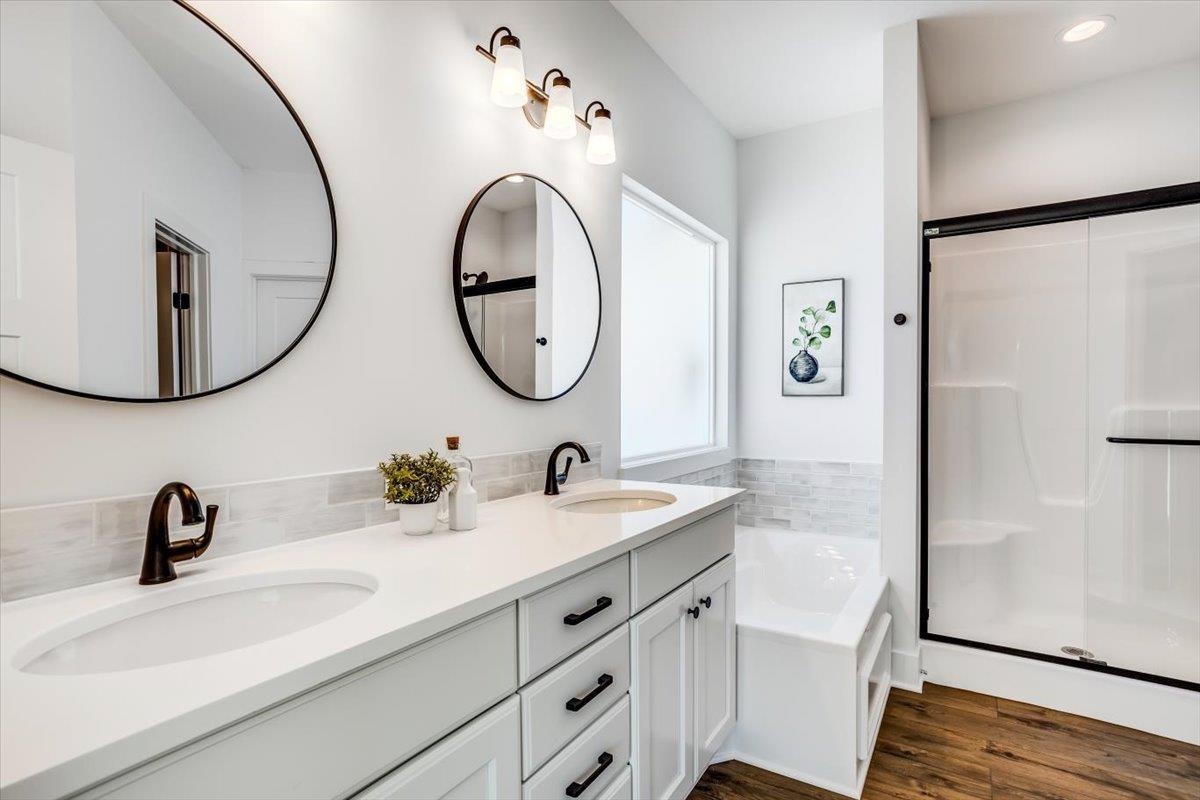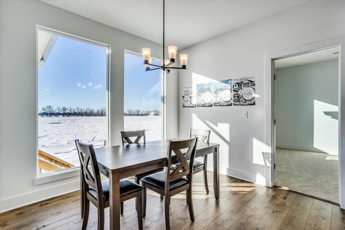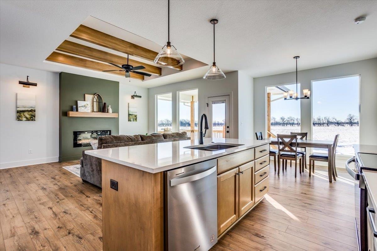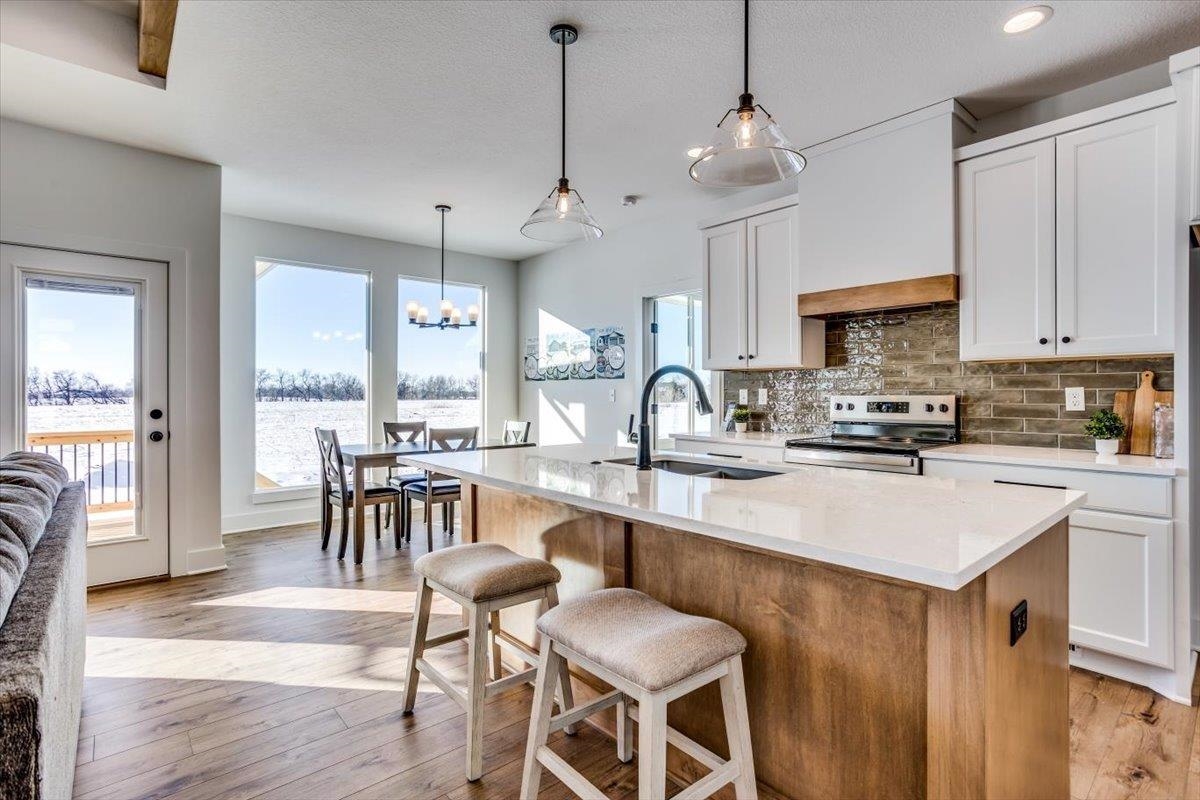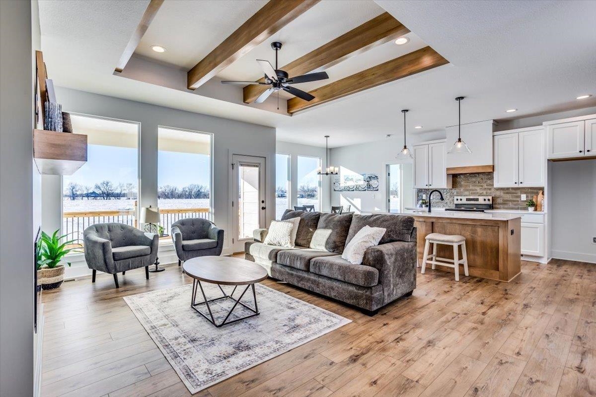 - Description: Welcome to the Magnus 2 Plan by M&M Custom Construction, a stunning new home tucked away on a quiet cul-de-sac lot in Watermarke. Showcasing a timeless front elevation with modern architectural flair, this home offers elegant finishes, thoughtful design, and the high-quality craftsmanship M&M Custom Construction is known for. The main floor features a spacious living room with 10-foot ceilings, warm wood beam accents, large picture windows, and an electric fireplace with a wood mantle, flanked by built-in cabinets and shelving. A walk-out door leads to the expansive covered deck, complete with stairs down to a large ground-level patio, creating the perfect setup for relaxing or entertaining. The well-equipped kitchen includes quartz countertops, a custom-built range hood, abundant cabinet space, and a walk-in pantry. The adjoining dining area is filled with natural light from large picture windows. The luxurious primary suite offers a spacious bedroom, private bath with dual vanity, tile shower, soaker tub, and walk-in closet. Two additional bedrooms, a full hall bath, drop zone at the garage entrance, and a separate laundry room complete the main level. The finished basement continues to impress with a massive family room, media wall with custom trim and LED accent lighting, large wet bar, two spacious bedrooms each with walk-in closets, a full hall bath, and plenty of storage. Available now in Watermarke, this beautifully crafted home combines comfort, style, and function in an exceptional setting. Some information may be estimated and is not guaranteed. Please verify schools with USD 262.