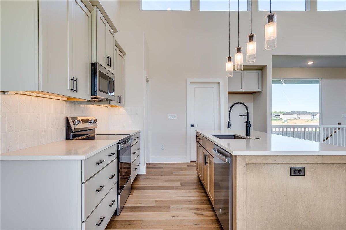 - Description: The modern Cambridge plan by Paul Gray Homes boasts a sleek exterior complemented by a hip roof. The great room and kitchen feature stunning 14-foot ceilings, enhanced at the top by transom windows that flood the space with natural light. The living area is anchored by an electric linear fireplace, surrounded by shelves and cubbies for stylish storage and display. The master bedroom is highlighted by a striking accent wall. Durable LVP flooring spans the living, kitchen, and dining areas, while the master bathroom is finished with elegant tile flooring. Step outside onto the expansive 15’ composite deck, perfect for outdoor gatherings. The property includes a 30-foot approach driveway. Basement is being finished and includes large family room, wet bar, 2 additional bedroom, and bath. Room sizes estimated. Taxes shown on vacant lot. Specials may not be spread yet and are estimated. Well, sprinkler, sod, & landscaping included! Information deemed reliable but not guaranteed and may change without notice. There is a $250 mailbox fee collected at closing