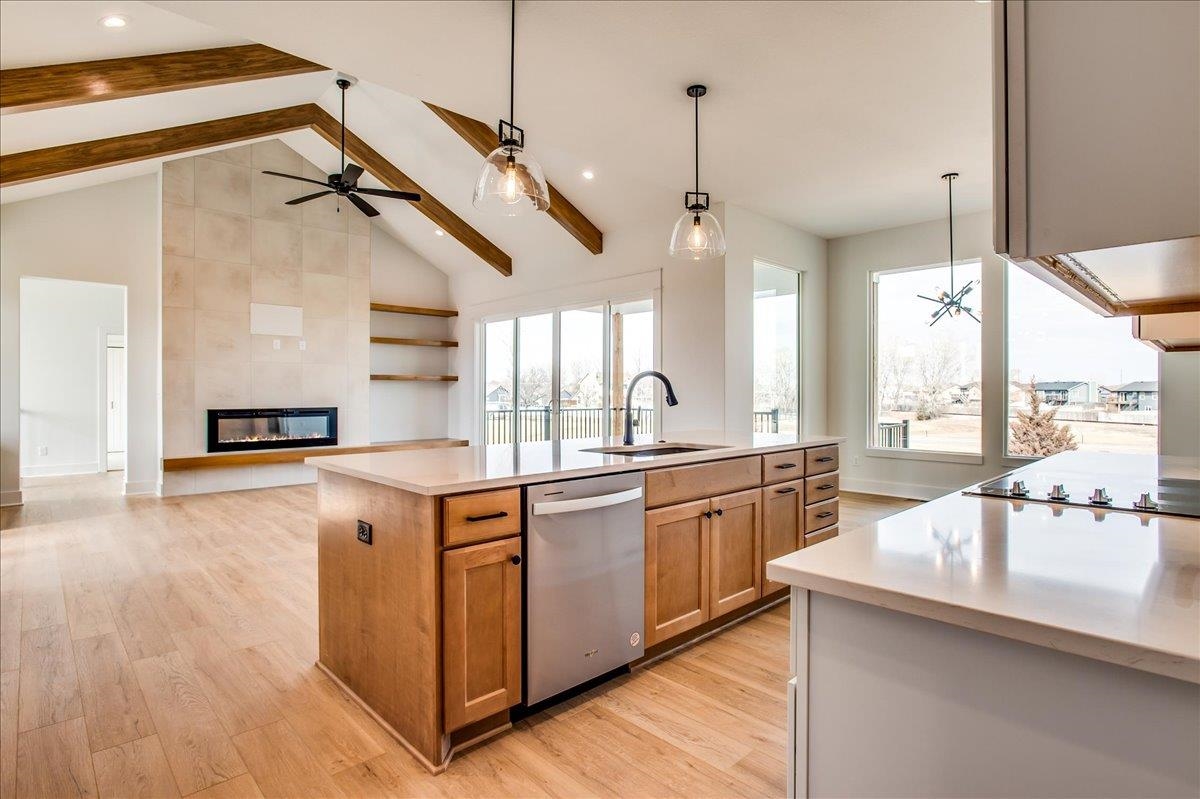 - Description: If you love the new “Kenzie” plan model in Henwick, this is built off it and is for sale! Located on a large over 1/3 acre lot. You’ll love the noteworthy tower front porch entry and large windows. Open floor plan offers high beamed vaulted ceilings, large kitchen with floating shelves, side wine/coffee bar, and large pantry. Focal point slider opens out to raised covered concrete patio. Lots of storage in this home. Master retreat is a spa with wet room featuring large walk in shower and soaker tub, and spacious closet connects to laundry. This split bedroom plan houses 2 additional bedrooms on the other side of the home. Downstairs in finished basement you have an extremely large family/rec room with a wet bar, and lots of room to spread out in comfort in the family/rec room! Bedrooms 4 and 5 are on one side with an additional bath that has sink separate from tub/shower, perfect for everyone getting ready at the same time. So much space and open living spaces, come tour today! This home is currently under construction, so jump in now and you'll get to pick some finishes! Includes well, sprinkler, sod, & landscaping. Information deemed reliable but not guaranteed and may change without notice. Room sizes may be estimated. Taxes are shown on vacant lot.Specials may not be entirely spread yet and are shown as estimates. There is a $250 mailbox key collected at closing. Home is currently under construction.