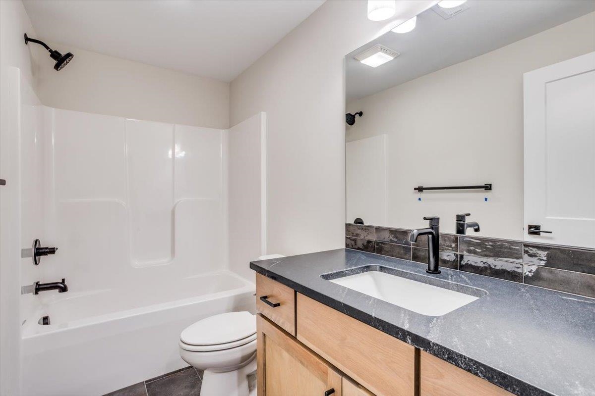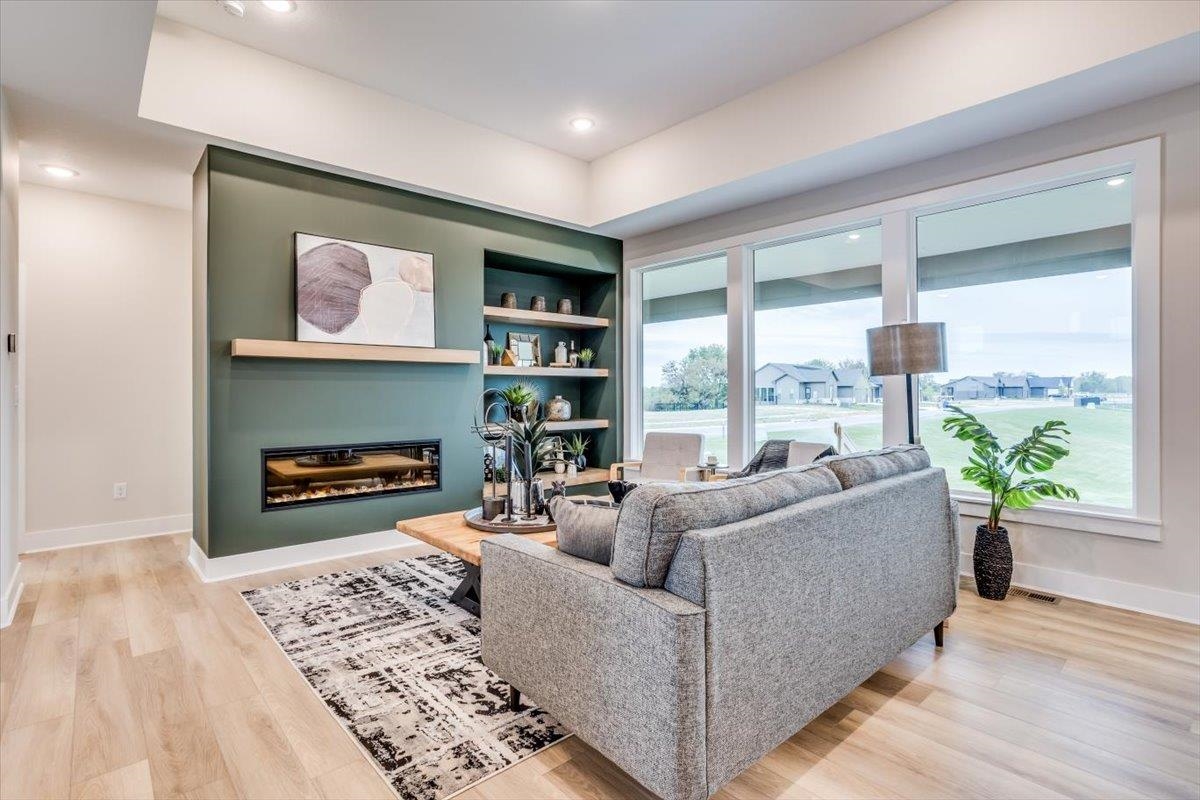 - Description: The stunning Adriana 5-bedroom, 3-bathroom home sits on a large corner lot with picturesque lake views. The exterior boasts elegant brick columns complemented by horizontal wood posts on the vaulted front porch, creating a warm and inviting entrance. You’ll love the large covered concrete deck out back to enjoy those lake views! Anderson windows throughout the house provide plenty of natural light. The spacious 3-car garage offers ample parking and storage. Inside, the main upstairs living areas feature LVP flooring, providing both durability and style. A cozy electric fireplace is the focal point of the living room, surrounded by custom floating shelves, perfect for displaying your favorite decor. The basement is also finished and has extremely large bedrooms. The kitchen is a chef's dream, equipped with a custom outside-vented range hood, now has a gas cook top, under-cabinet lighting with hidden outlets, and sleek cabinetry. The master bedroom features a soft-close barn door and built in shelving, adding a touch of elegance. The master bath is a true retreat as is expected in a home from Paul Gray. Door has been added to master closet. This home combines thoughtful design with modern amenities, making it a perfect blend of comfort and style in a prime lakeside location. Iron fence is now done and included! This lot is larger than the property boundaries, so if you're wanting a large lot on the lake, this is your chance! Information deemed reliable but not guaranteed and may change without notice. Specials may not be entirely spread yet and are shown as estimates. Additions have been added to the home since pictures were taken. There is a $250 mailbox fee at closing.