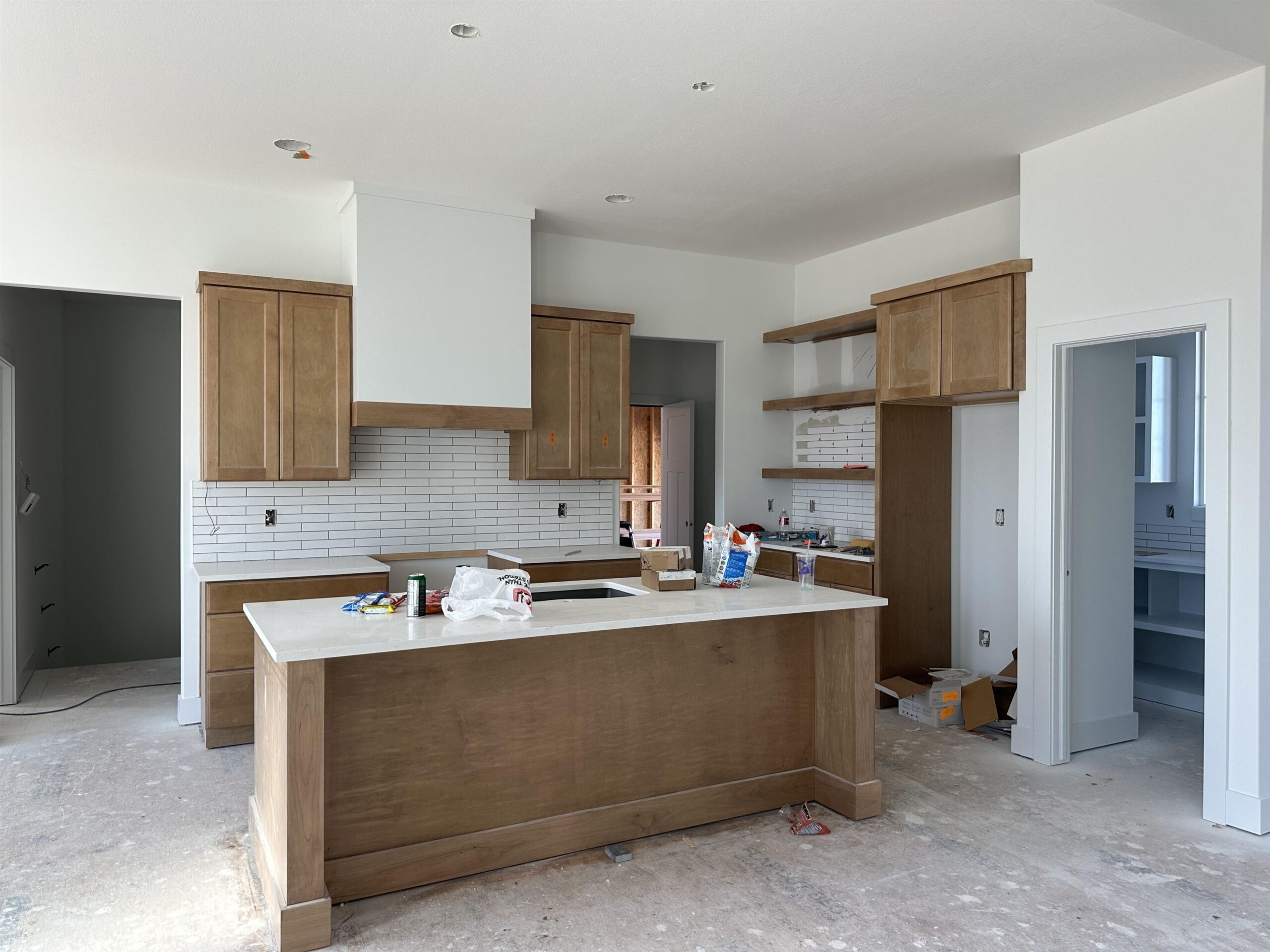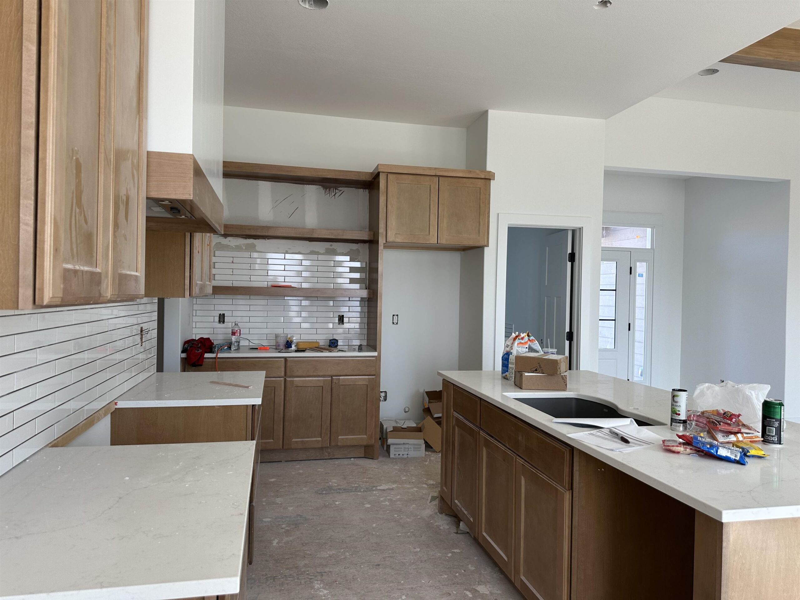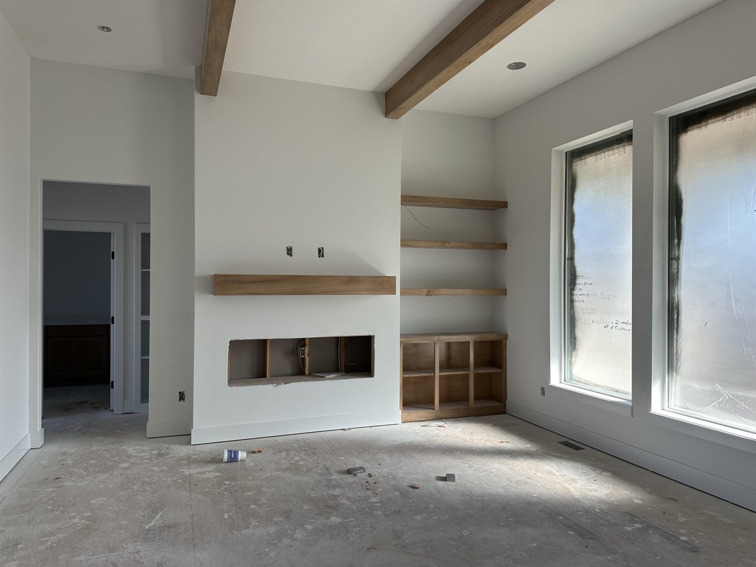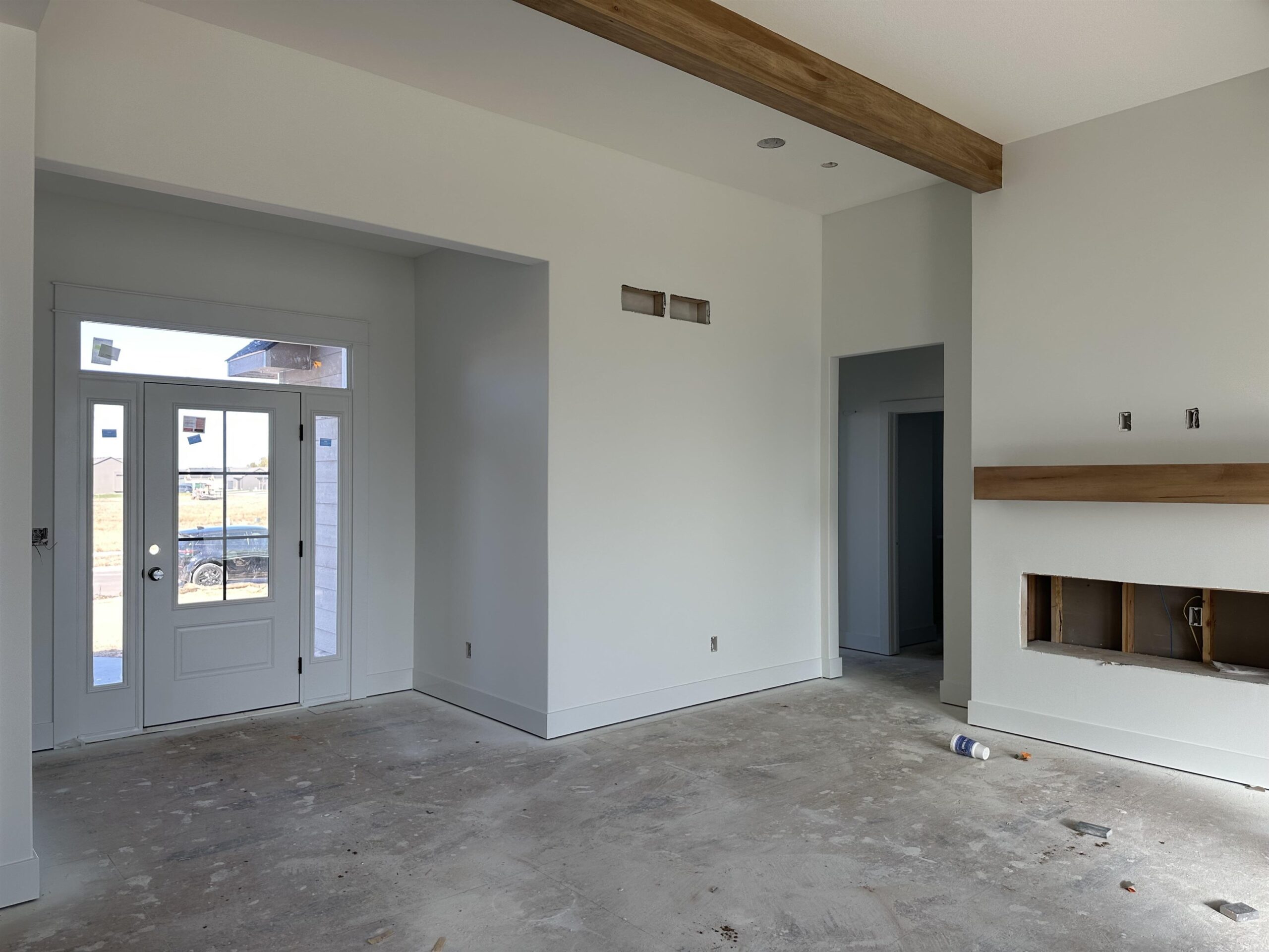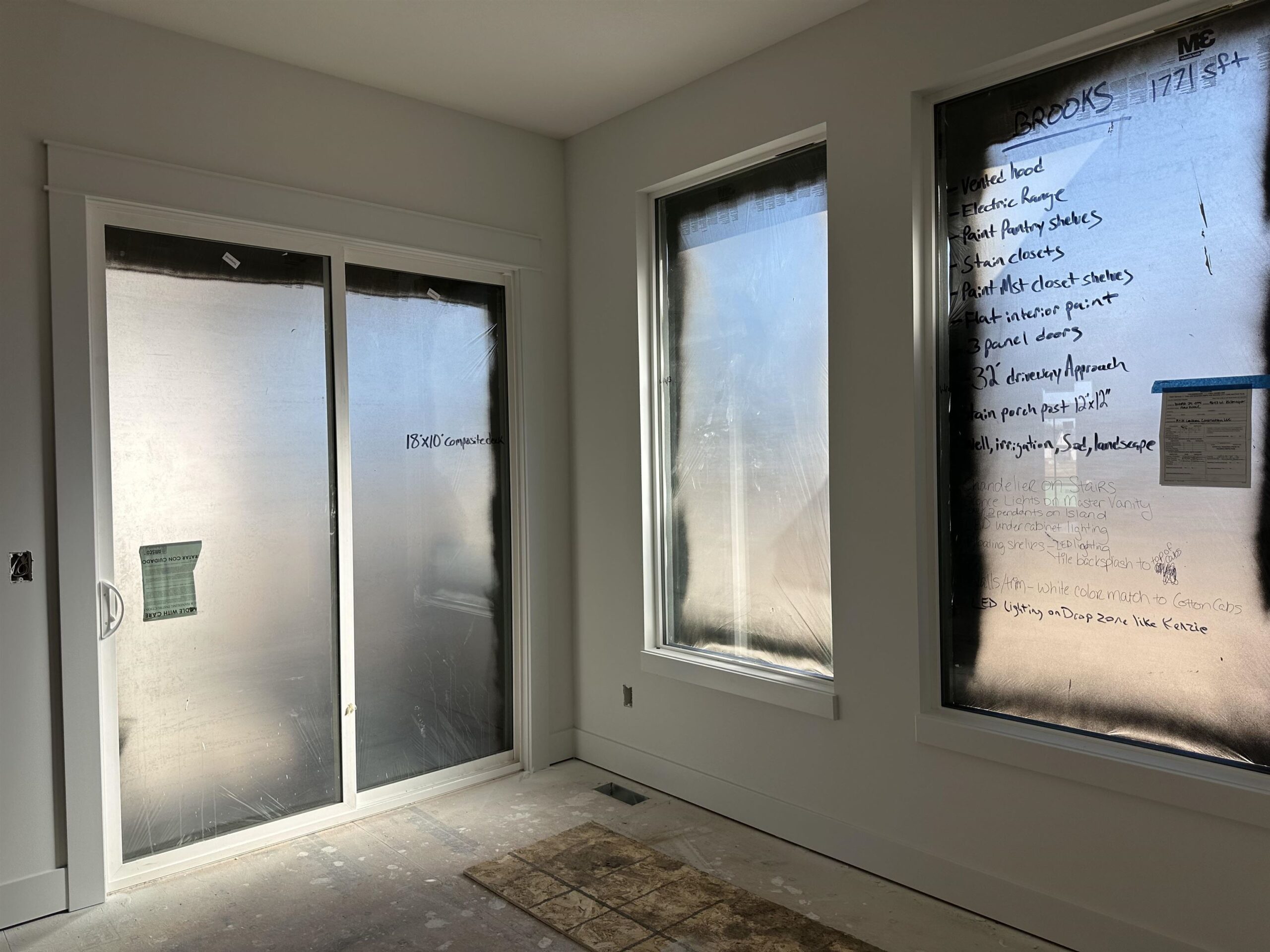 - Description: This home is currently under construction! Includes well, sprinkler, sod, & landscaping. Style, function, and thoughtful design come together in the beautiful Brooks plan by M&M Construction. The living room impresses with its over 11-foot ceiling accented by maple wood beams and an electric fireplace as the focal point. The kitchen offers quartz countertops, a bright walk-in pantry with a window, built-in microwave, and plenty of shelving. A convenient drop zone with bench and shelves is tucked behind the kitchen, right by the stairs to the finished basement. The master suite connects to a separate laundry room with a folding table and built-in dresser in the closet. Enjoy a spa-like master bath featuring a separate tub and shower and tile flooring. LVP runs throughout the main living areas for a clean, easy to care for cohesive look. Downstairs, the finished basement includes a walk-up wet bar—perfect for entertaining. Outside, relax on the huge 18’x10’ covered composite deck overlooking a large lot that backs to mature trees. 8-foot garage doors complete this smart, stylish home designed for modern living. Information deemed reliable but not guaranteed and may change without notice. Room sizes may be estimated. Taxes are shown on vacant lot.Specials may not be entirely spread yet and are shown as estimates. There is a $250 mailbox key collected at closing. Home is currently under construction.