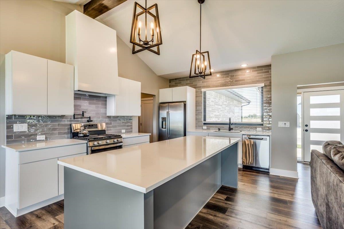 - Description: Priced below county appraisal, seller says sell...jump on this one! This is a 1 year old custom built home on a huge lot on the lake in Henwick! This is the showstopper “Kevin” plan with stairs to lower level located on the side corner of home with full glass walls! You’ll love the floor to ceiling windows in the vaulted living room that look out to the lake. Kitchen is open and has the much coveted window over the kitchen sink looking to front of home. Pot filler included in the sleek kitchen that includes the refrigerator. The pantry with double entries runs behind the length of the kitchen, and has 2 pocket doors for double walk thru entry. The laundry room also houses a decorative bench drop zone and connects to the spacious master closet. Stunning soaker tub and glass wall full tile shower is a treat in the primary bedroom suite. Bedrooms 2 and 3 (one with vault ceiling) are on the opposite side of the house with a hall bath between. Downstairs you'll find a large family rec room with wet bar, bath, and 2 more bedrooms! Lots of storage too including a safe room. Large covered deck on back to enjoy those lake views! Home has custom hunter douglas blinds throughout and is totally move in ready! Information deemed reliable but not guaranteed and may change without notice. Specials are not be entirely spread on this lot so estimates shown. HOME IS OCCUPIED!